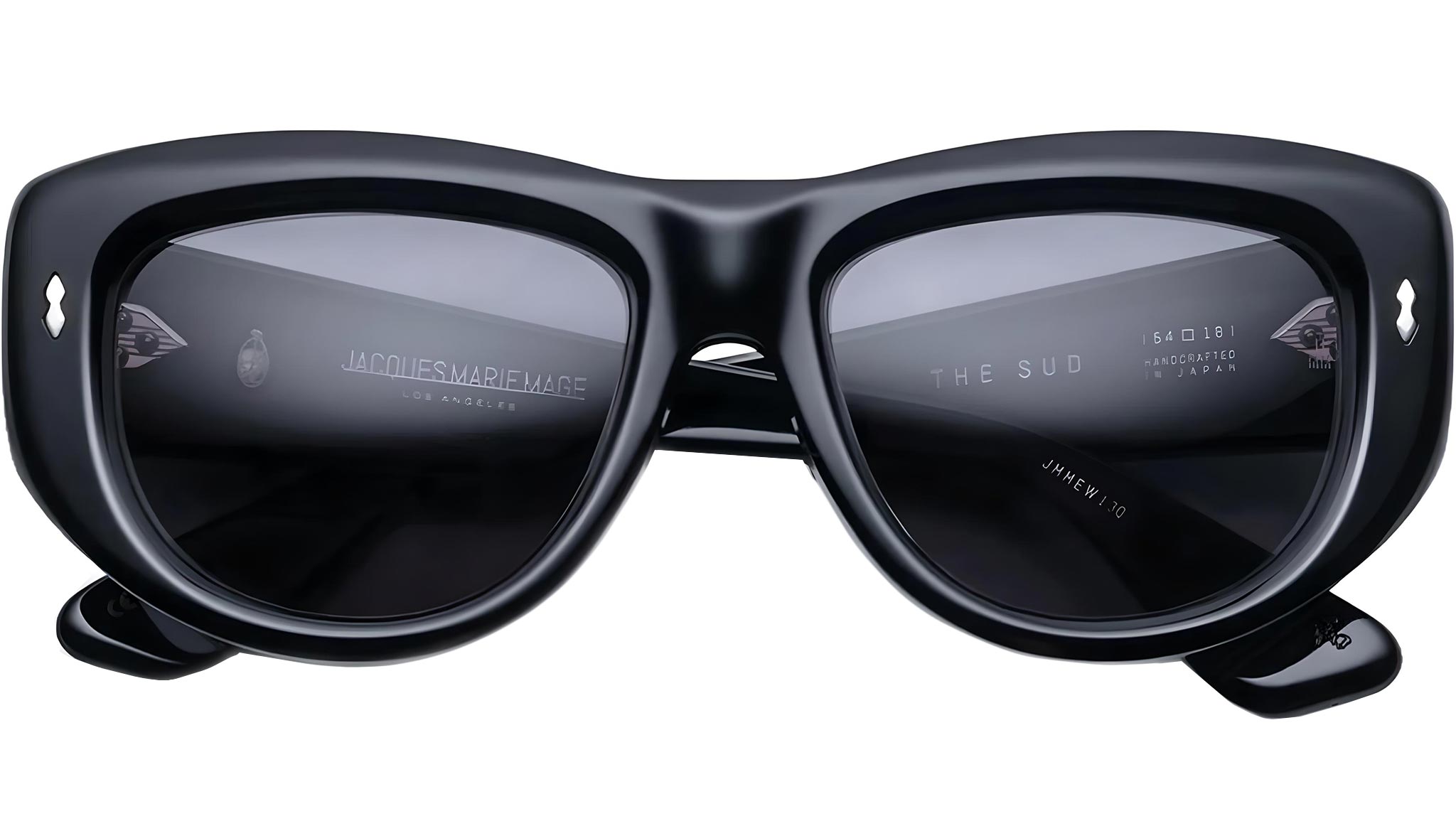 En tidløs tourer fra Erin Wasson for JMM-kollektionen, tilgængelig i "Francoise", et poleret sort farvekoncept opkaldt efter den franske singer-songwriter Françoise Hardy. Den blødt skrånende, skulpturelle ramme suppleres af Jet-linser og karakteristiske sølvmetaludsmykninger, herunder dobbelte pilespidser foran, sporformede nitter og tindingspidser med en spids af Marseille. Klassiske, blødt skrånende og skulpturelle tourers med karakteristiske metaludsmykninger, herunder dobbelte pilespidser foran, sporformede nitter, "Cantilever" wirecores med hårgrænsedetaljer og tindingspidser prydet med en kam af Marseille. BEGRÆNSET PRODUKTIONSBATCH PÅ 500 STK.Sort 10 mm stel af hærdet celluloseacetat med specialfremstillede acetatstænger med hardware af ædelmetal og sorte linser, Marseilles sølvmærke på stangspidserne, dobbelt pilehovednål i sterling sølv foran, skjult Cantilever wirecore i sølv, spændingssikret 7-tønde hængsel til hårgrænsen i sølv og Jet CR -39 6 base linser med antirefleksbehandling på bagsiden, der tilbyder 100 % UV-beskyttelse. Hårdskal æske i bordeaux silkestof med garantihæfte, etui af kalvelæder i marine imiteret struds, håndlavet i Italien, mikrofiberrenseklud med kunst i samarbejde med Mattea Perrotta, ægthedscertifikat for trykpapir med begrænset oplags serienummer og QR-kode for at gøre krav på digitalt ejerskab.