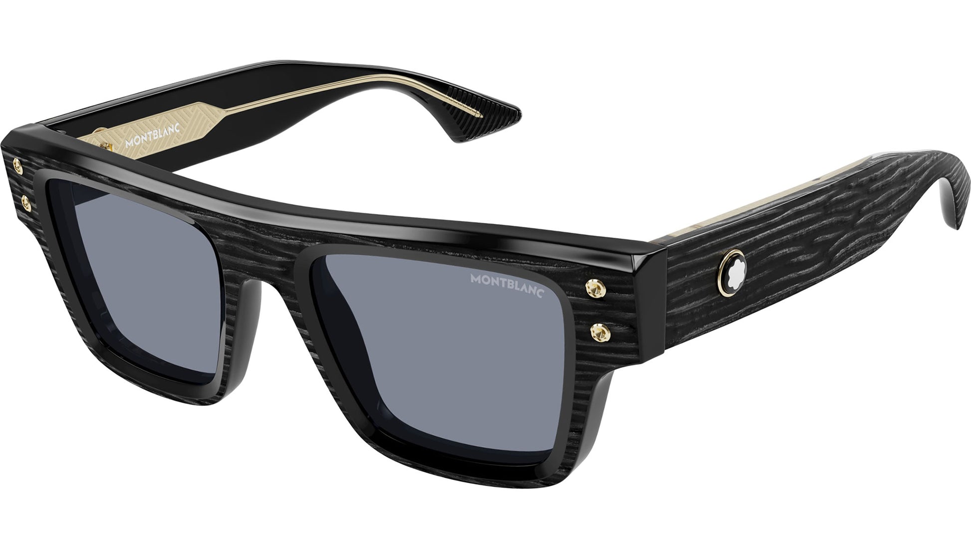 Montblanc MB0253S 011 Black Black Rectangular Sunglasses