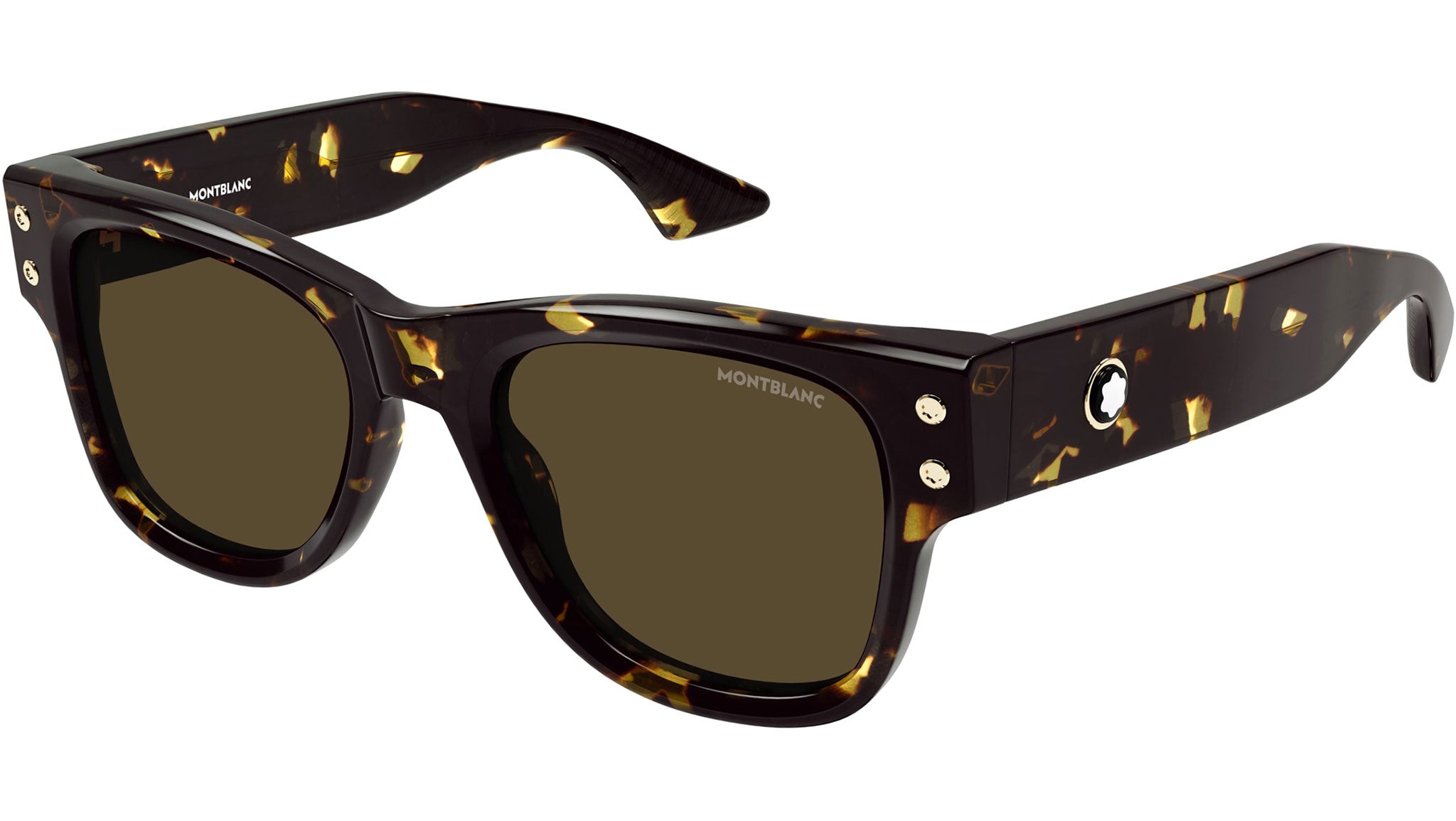 Montblanc MB0381S 003 Shiny Havana Rectangular Sunglasses