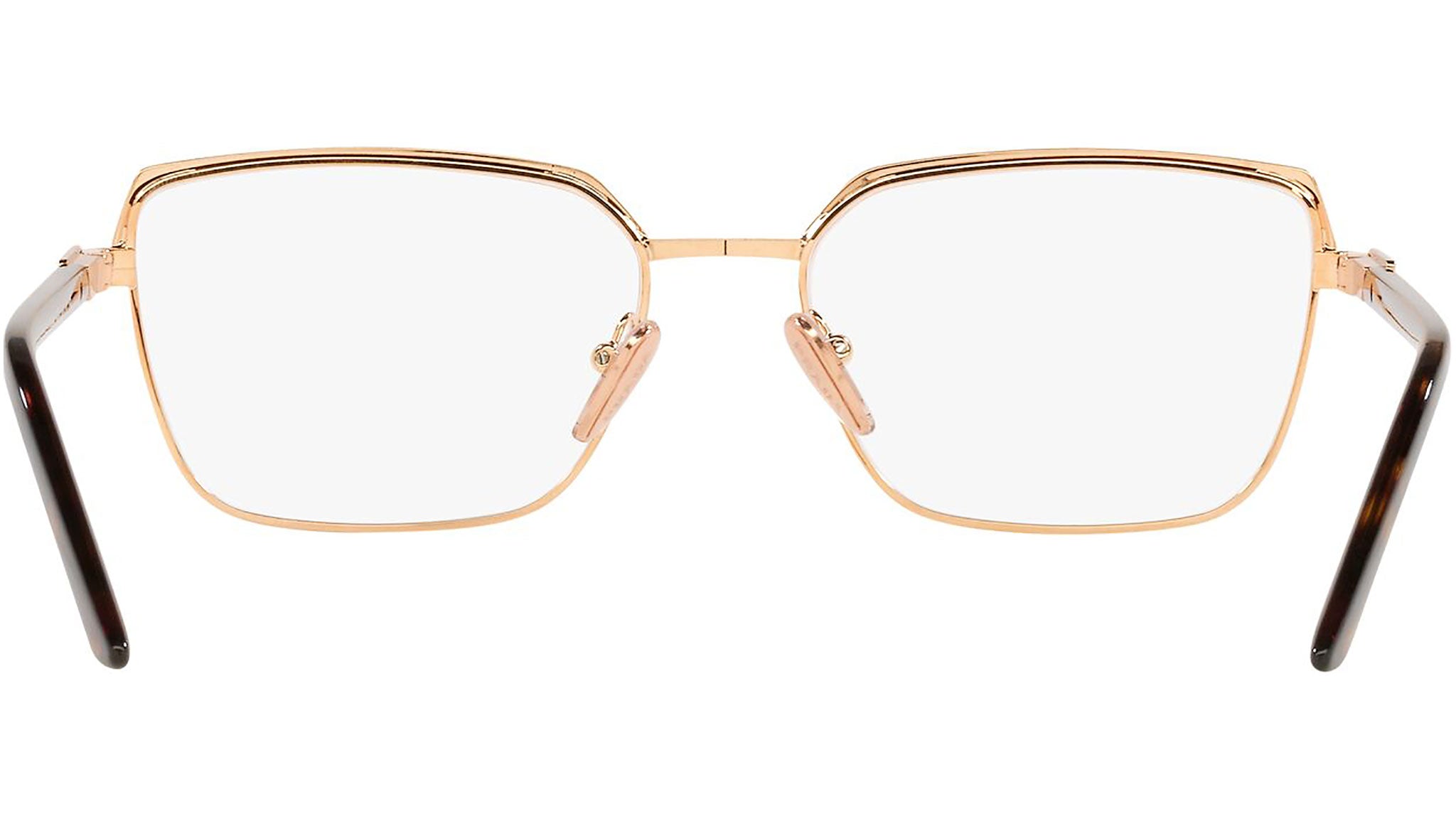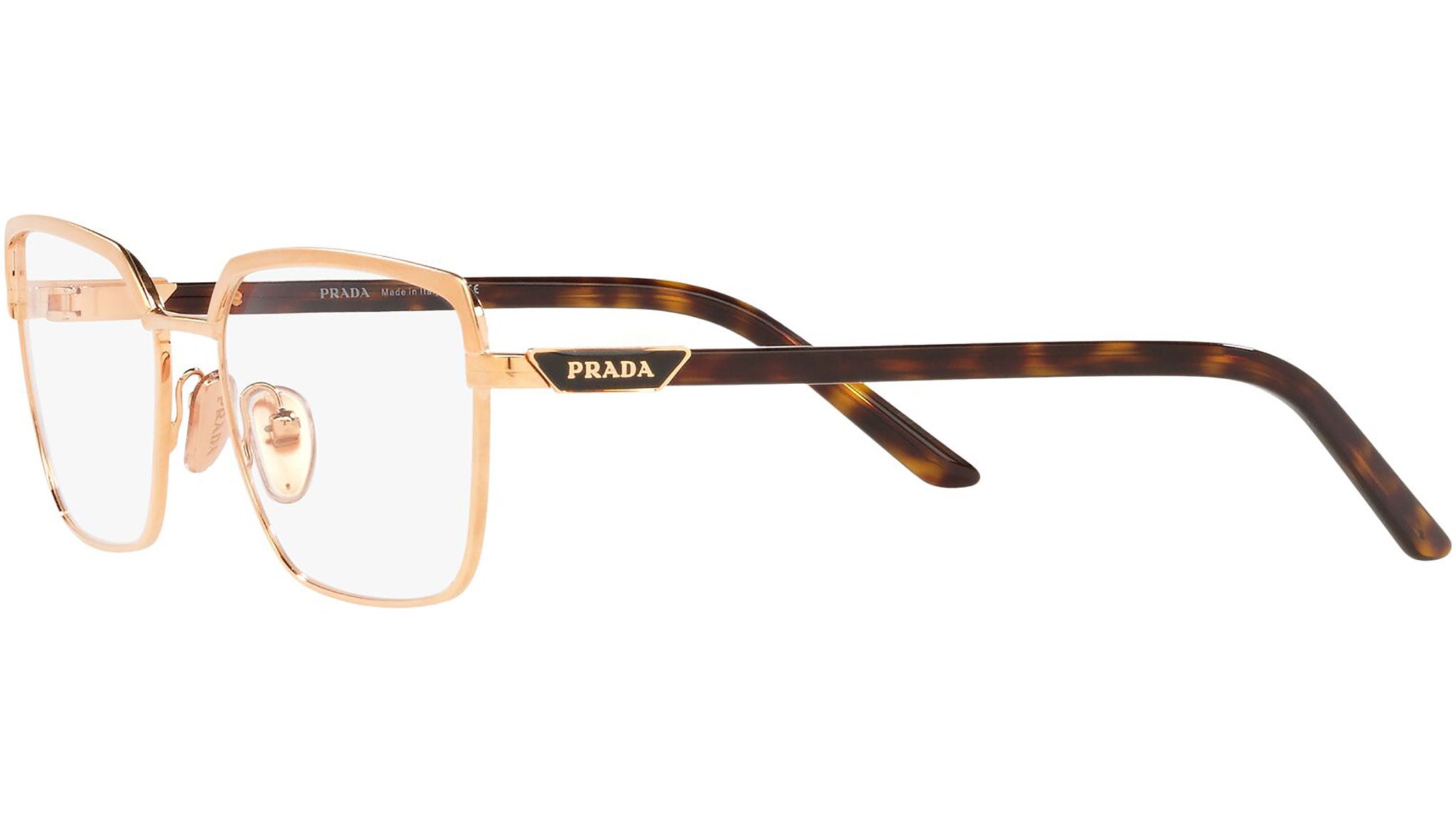 Prada Eyewear Collection model PR 56YV mat pink guld / pink guld stelvariant, farvekode 01W1O1. Prada repræsenterer det bedste af italiensk kultur og tradition. Det er et af de mest innovative, prestigefyldte og bredt anerkendte mærker inden for mode- og luksusvareindustrien med en skarp sans for detaljer og nye trends.
