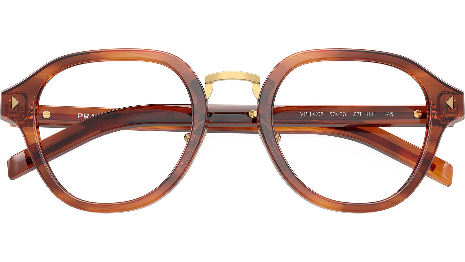 Prada PR C05V 27F1O1 Striped Cognac Glasses
