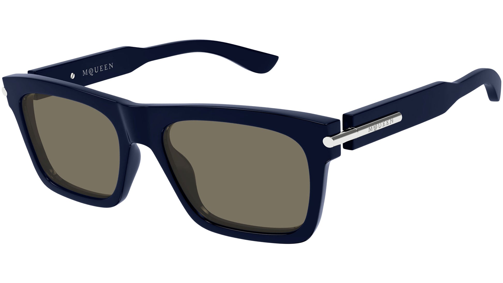 Alexander McQueen AM0495S 004 Solid Dark Blue Rectangular Sunglasses