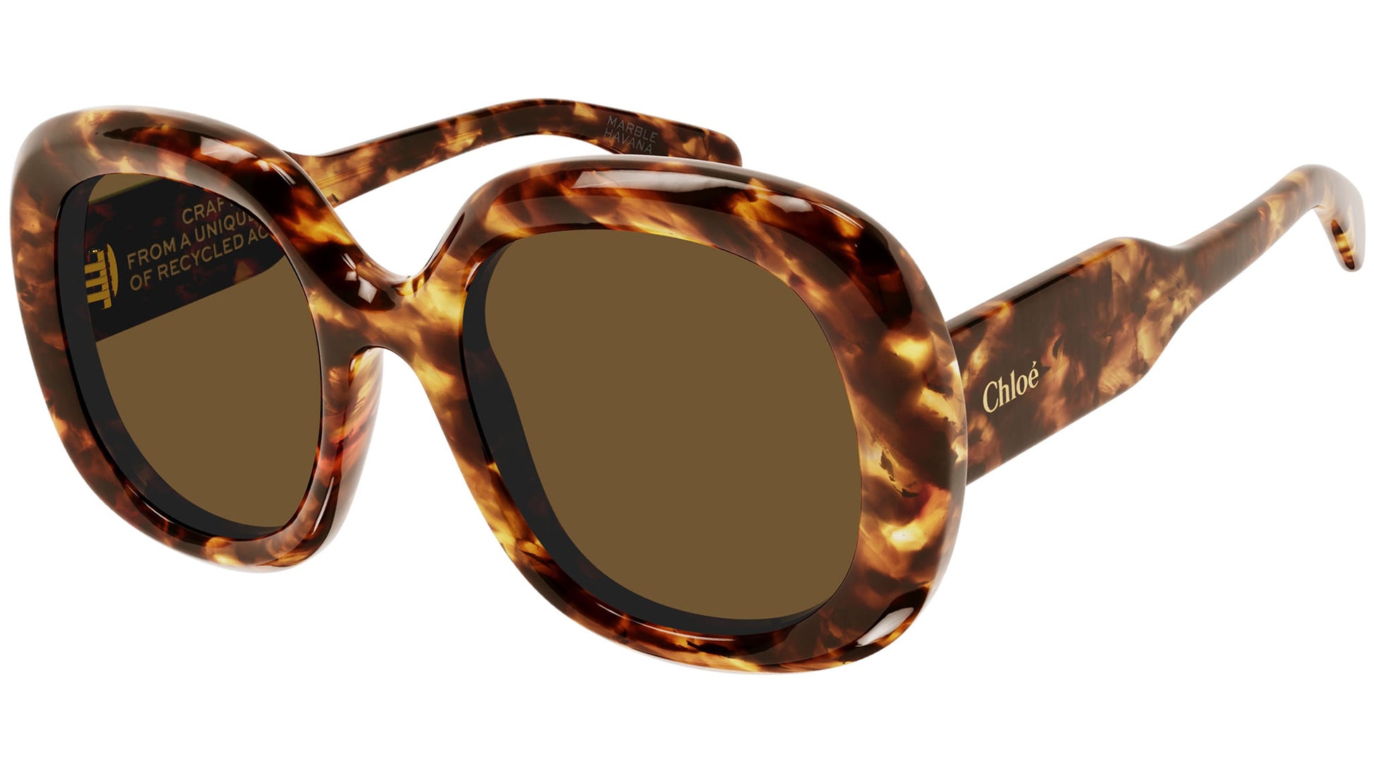 Chloé CH0153S 003 Shiny Havana Rectangular Sunglasses