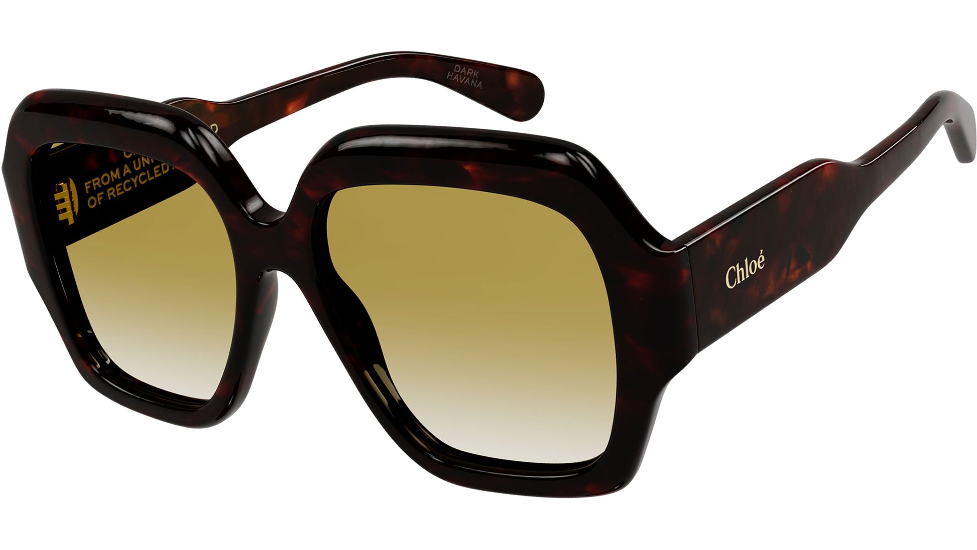 Chloé CH0154S 002 Shiny Havana Rectangular Sunglasses