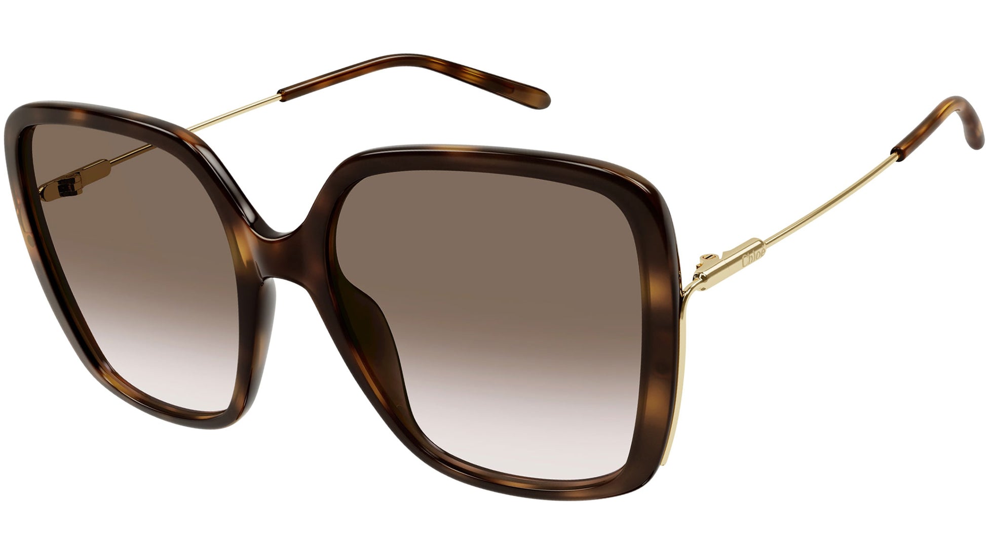 Chloé CH0173S 002 Shiny Havana Rectangular Sunglasses