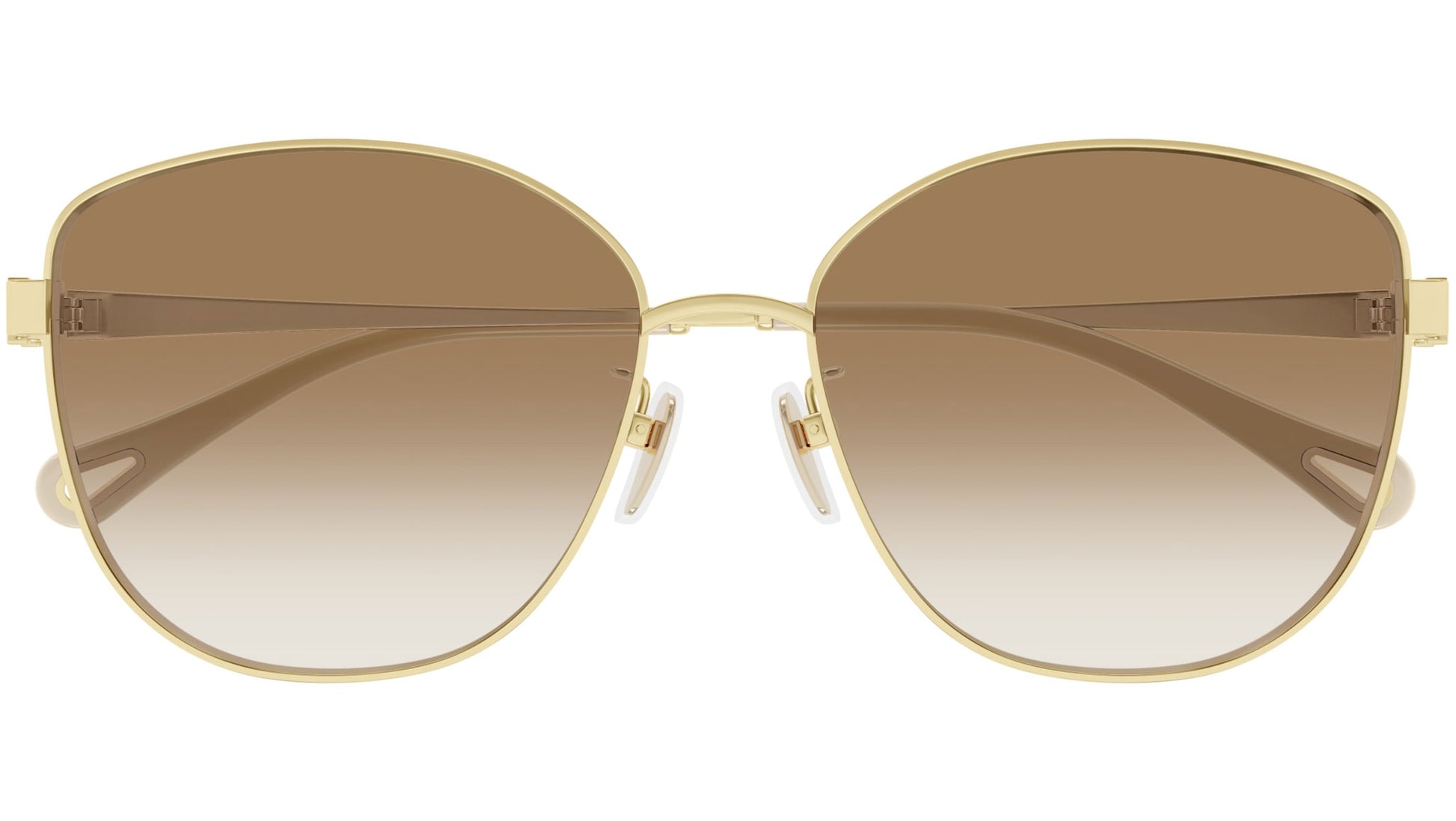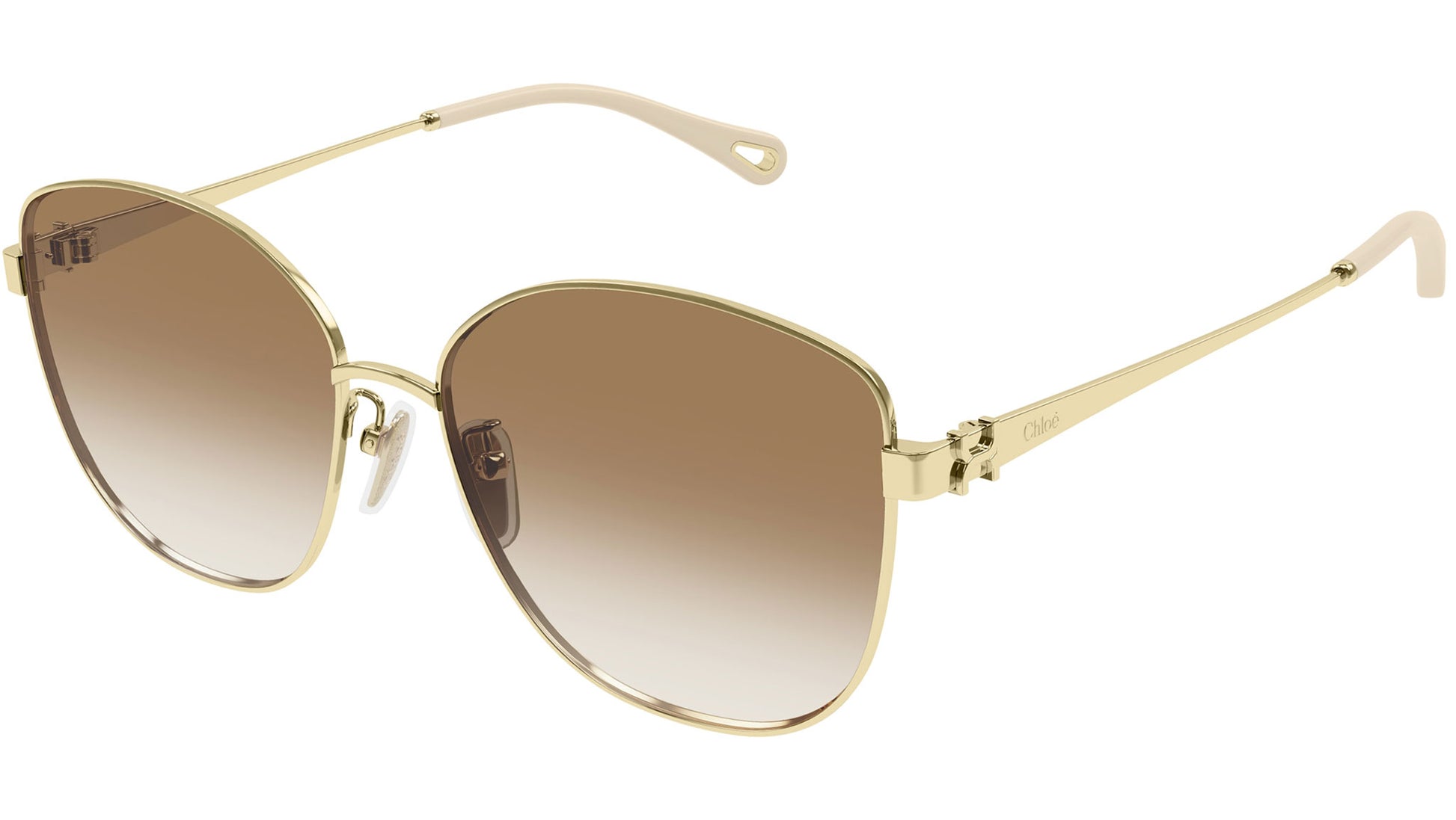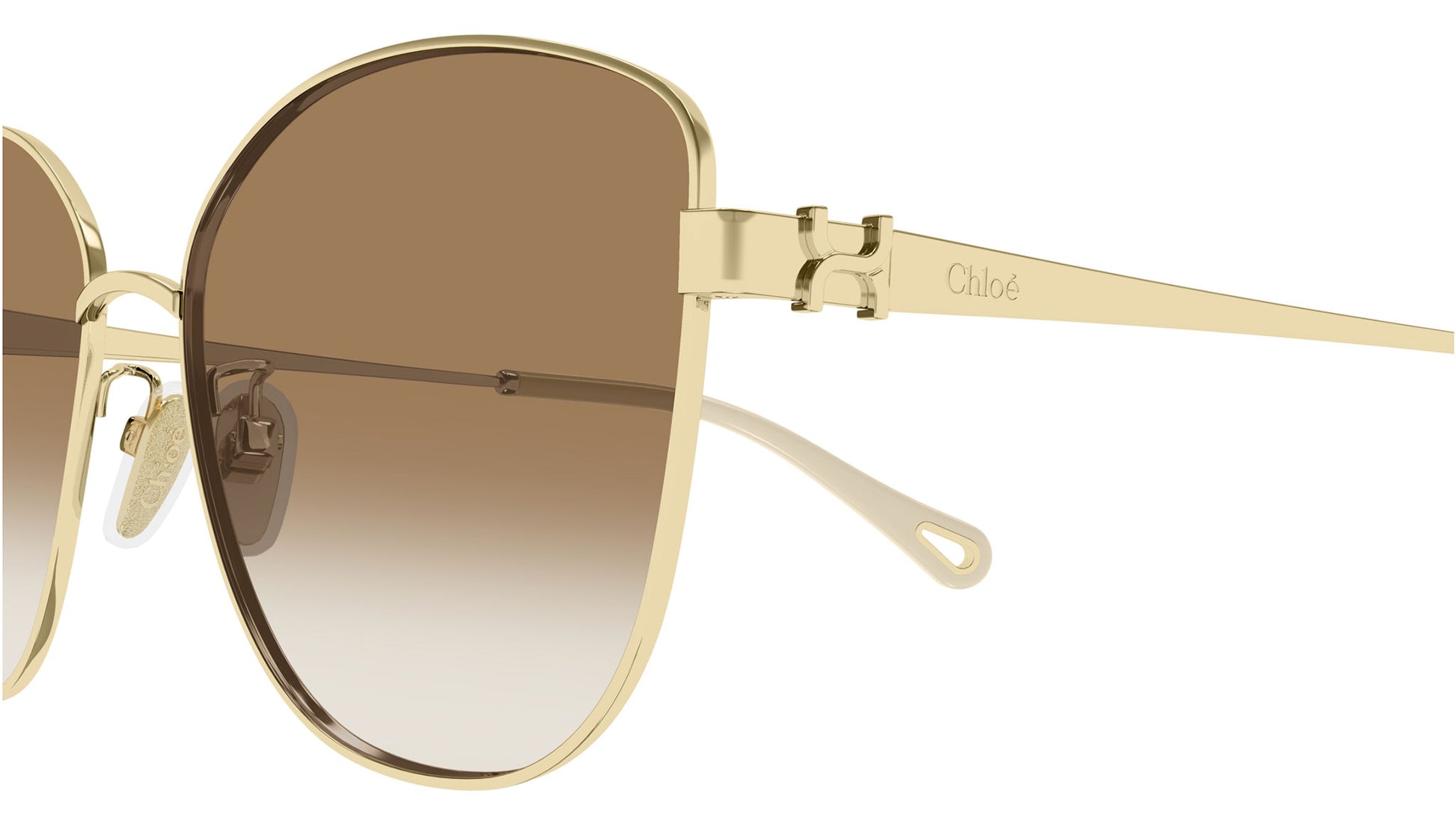 Chloé CH0306SK 004 Sonnenbrille für Damen, mit glänzendem, klassischem, goldfarbenem, rechteckigem Metallrahmen und Verlaufsgläsern aus Bio-Nylon in Braun. Markenlinie: Chloé. Stilcode: CH0306SK. Farbcode: 004. Hergestellt in Japan. Autorisierter Chloé-Online-Händler. Ihre Brille wird mit dem Originaletui und Zubehör geliefert und hat eine weltweite 12-monatige Garantie.