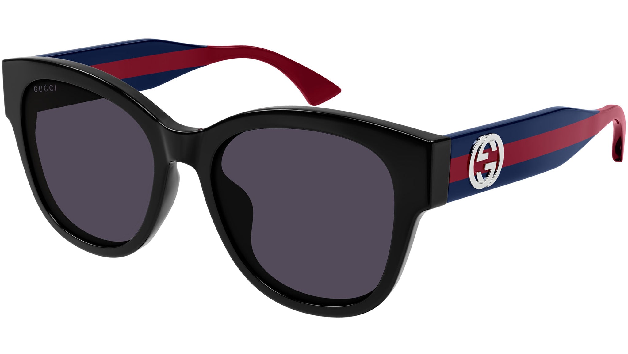 Sonnenbrille Gucci GG1866SK 004 für Damen, mit glänzendem, schwarz-schmetterlingsförmigem Rahmen aus recyceltem Acetat und dunkelvioletten Bio-Nylon-Gläsern. Markenlinie: Web. Stilcode: GG1866SK. Farbcode: 004. Hergestellt in Japan. Autorisierter Gucci-Online-Händler. Ihre Brille wird mit dem Originaletui und Zubehör geliefert und hat eine weltweite 12-monatige Garantie.