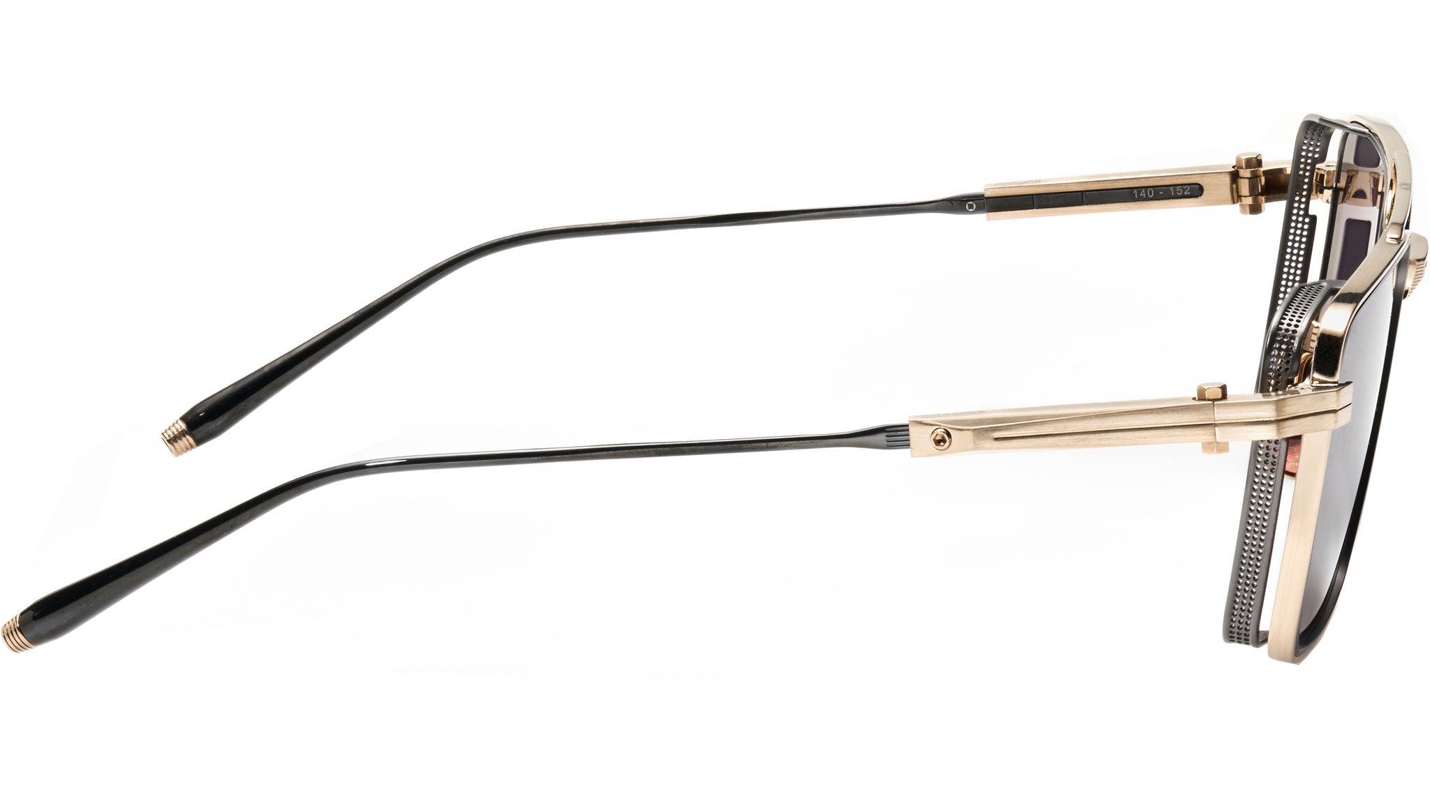 The Sprint-A frame by Akoni eyewear exemplifies the brand's seamless blend of heritage design and advanced innovation. Featuring mini side-shields with fine perforations reminiscent of vintage sports car interiors, this model is engineered with an adjustable temple system to deliver a custom, precision fit. Crafted in matte black titanium with brushed 12k gold accents, the frame is paired with sophisticated double gradient CR-39 lenses that shift from dark grey to rich green, adding depth and elegance. Meticulously made in japan, each piece reflects Akoni’s commitment to excellence and detail, and is presented in custom packaging that includes a hard case, microfiber cloth, and certificate of authenticity.