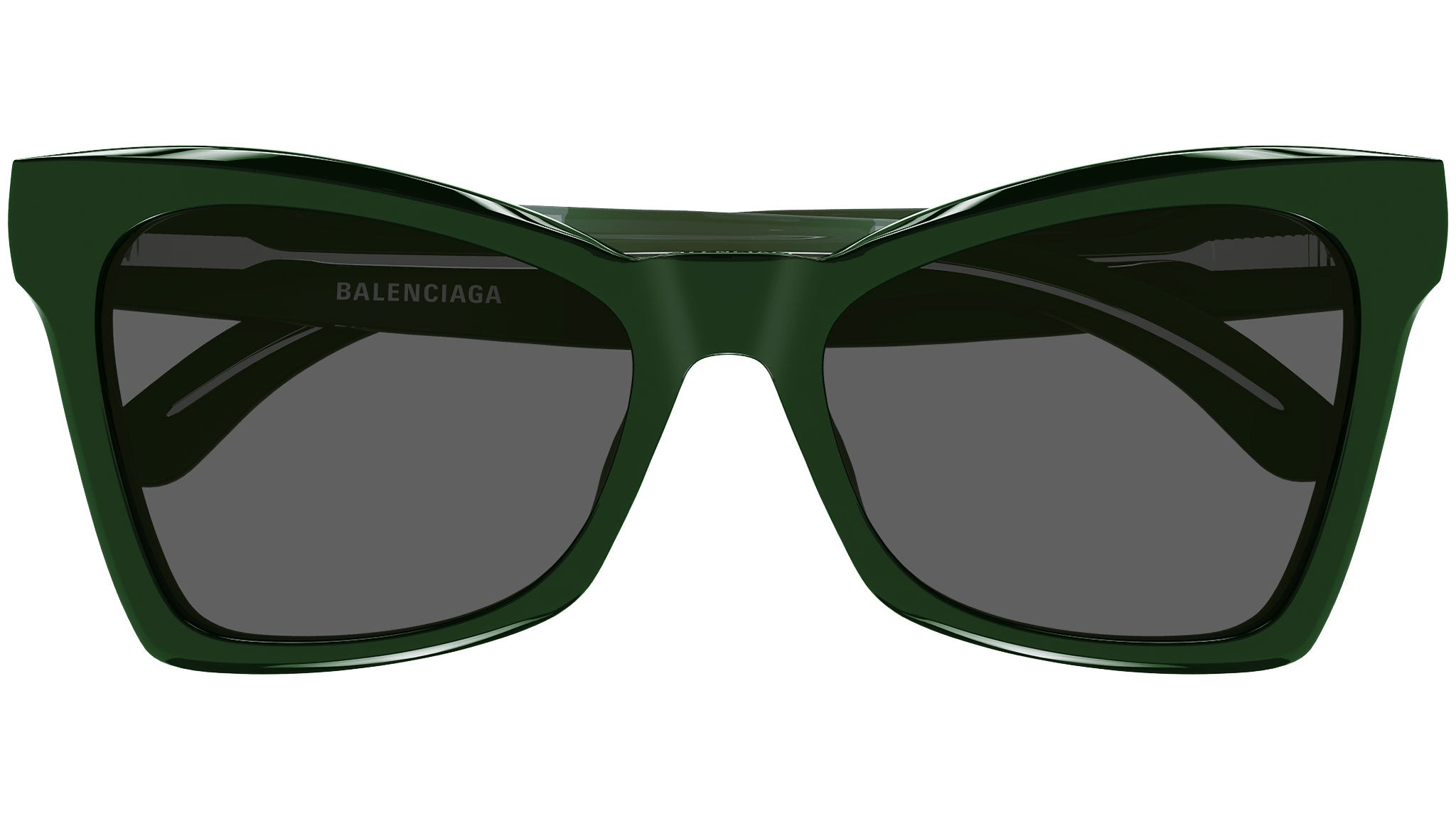 Balenciaga Everyday collection sunglasses model BB0231S 006 featuring shiny solid dark green frame and solid grey lens.