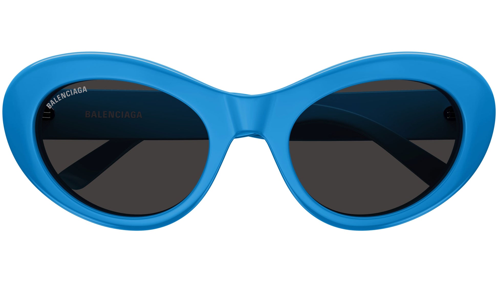 Balenciaga sunglasses model BB0294S from Everyday eyewear line, color code 006 shiny solid turquoise recycled acetate, panthos frame shape with solid grey lens.