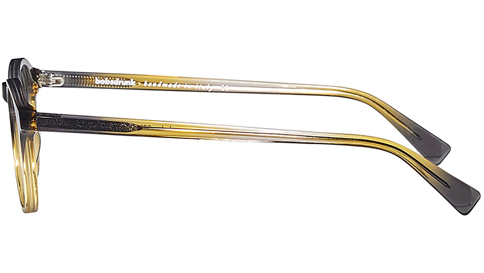 Bobsdrunk Malcolm (48) optical model in 270 color variant, grey / yellow gradient. Timeless products and bold shapes coexist in this 2023 optical collection. The lines are masterfully designed to create a “bold lightness” effect.Every pair of glasses is characterized by an emblematic detail shown on the front and on the temple tip, which highlights the value of the brand. The detail represents the union of the initial and final letter of Bobsdrunk in a single symbol. The careful choice of materials, the selection of workmanship and the extensive chromatic research are the prerogatives for every Bobsdrunk creation.