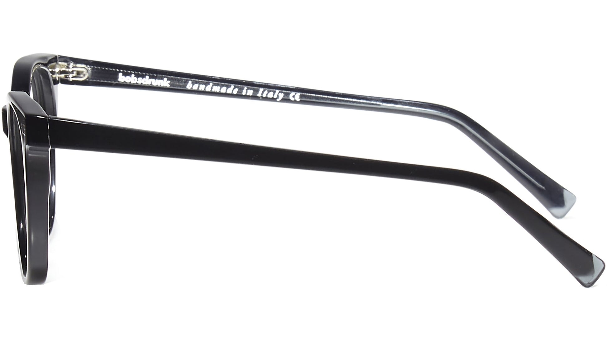 Bobsdrunk Wilson optical model in 01 color variant, black. Timeless products and bold shapes coexist in this 2023 optical collection. The lines are masterfully designed to create a “bold lightness” effect.Every pair of glasses is characterized by an emblematic detail shown on the front and on the temple tip, which highlights the value of the brand. The detail represents the union of the initial and final letter of Bobsdrunk in a single symbol. The careful choice of materials, the selection of workmanship and the extensive chromatic research are the prerogatives for every Bobsdrunk creation.