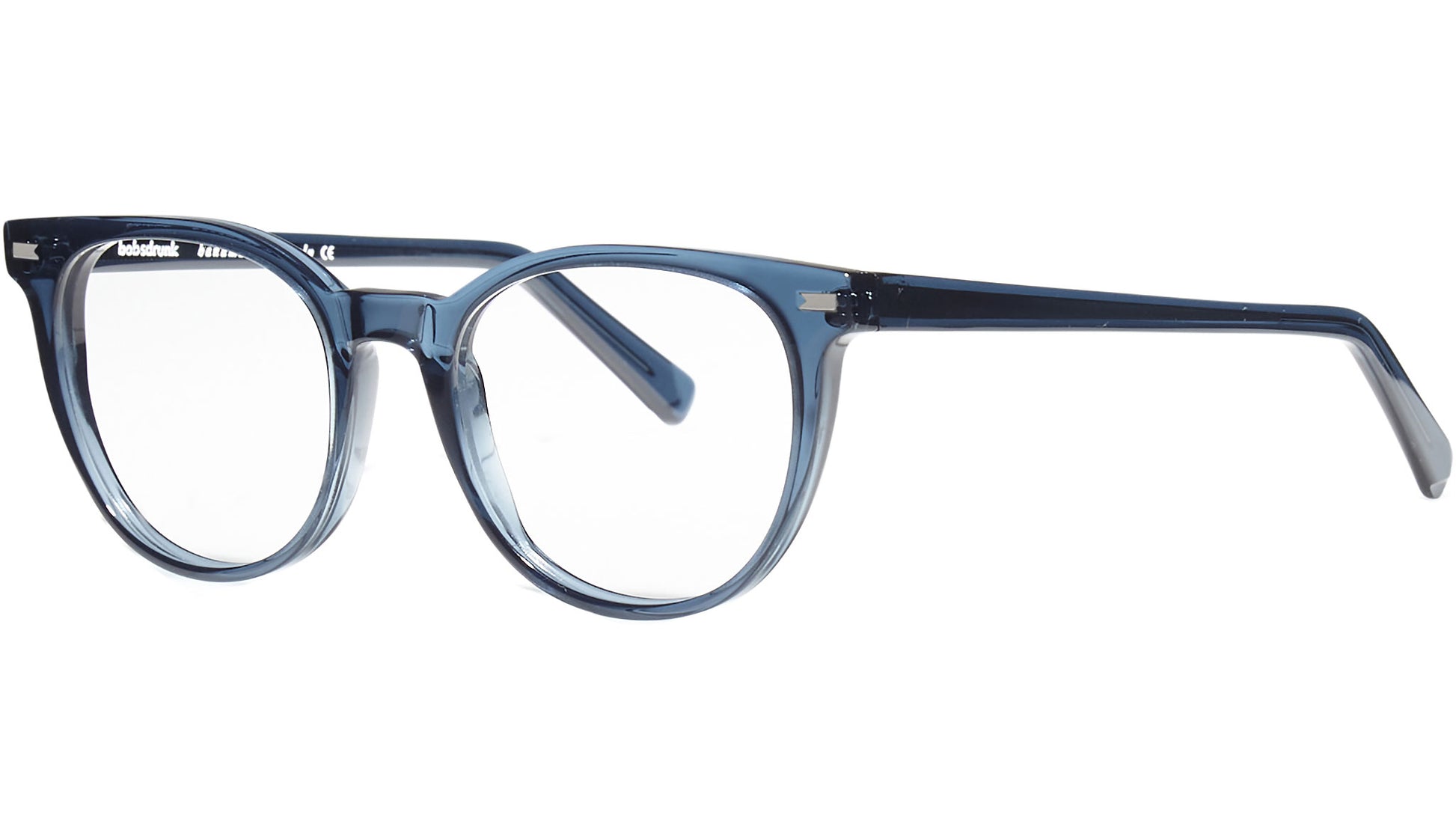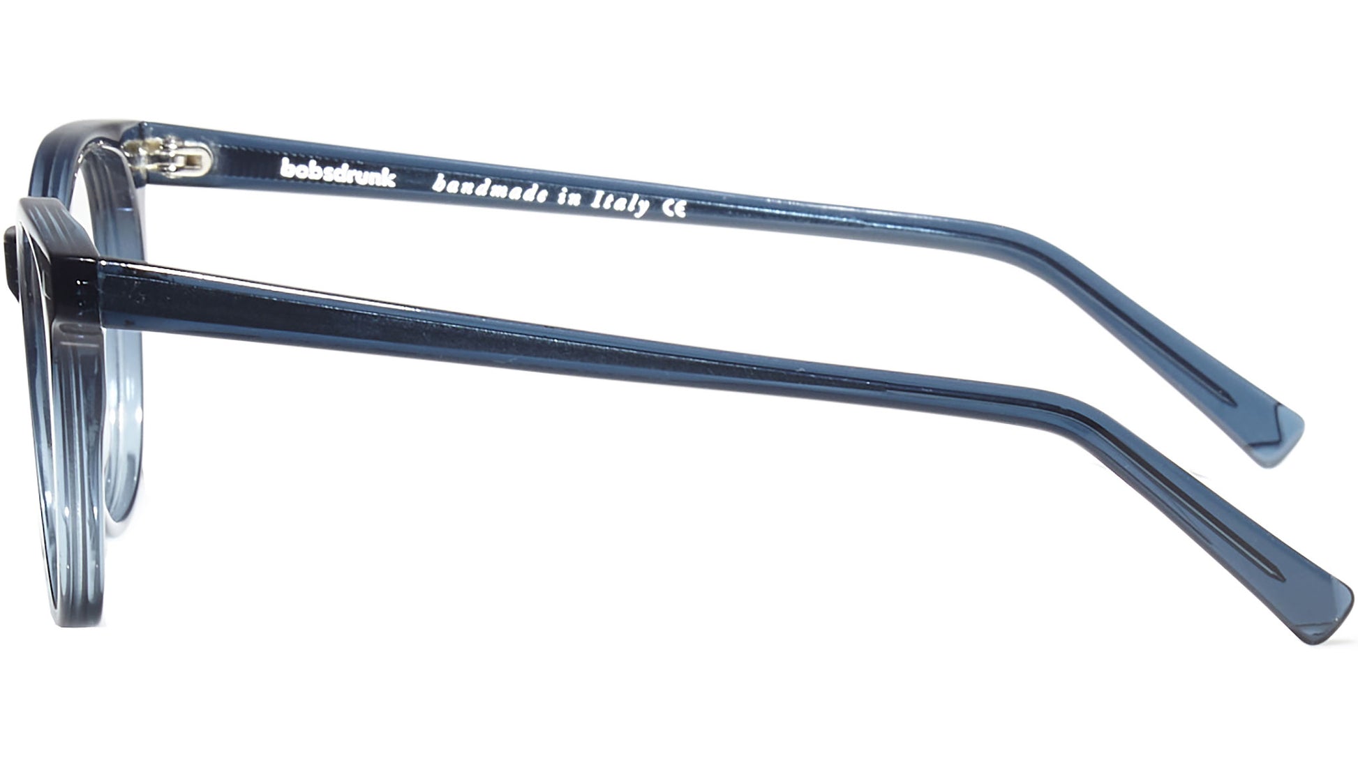 Bobsdrunk Wilson optical model in 132 color variant, transparent ink blue. Timeless products and bold shapes coexist in this 2023 optical collection. The lines are masterfully designed to create a “bold lightness” effect.Every pair of glasses is characterized by an emblematic detail shown on the front and on the temple tip, which highlights the value of the brand. The detail represents the union of the initial and final letter of Bobsdrunk in a single symbol. The careful choice of materials, the selection of workmanship and the extensive chromatic research are the prerogatives for every Bobsdrunk creation.