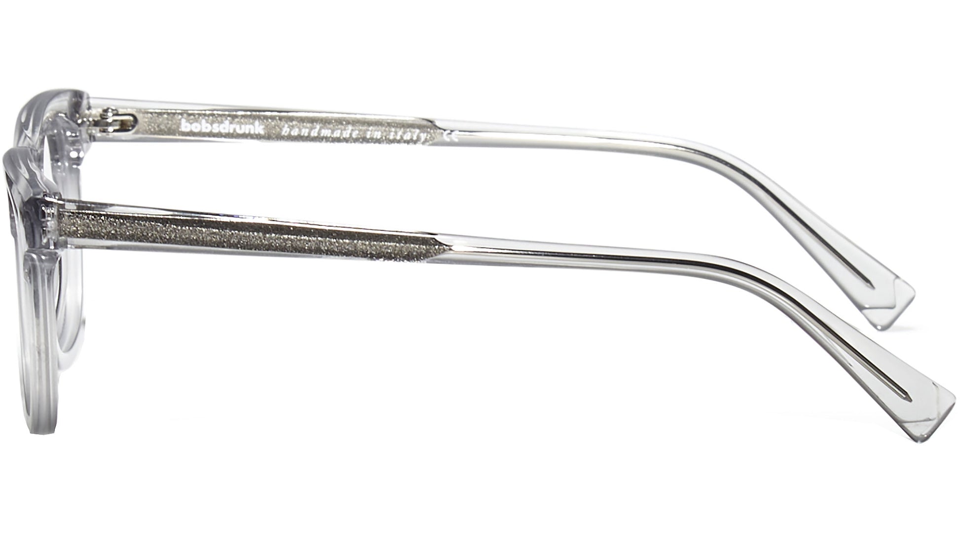 Bobsdrunk Zach optical model in 171/S color variant, matte transparent grey. Timeless products and bold shapes coexist in this 2023 optical collection. The lines are masterfully designed to create a “bold lightness” effect.Every pair of glasses is characterized by an emblematic detail shown on the front and on the temple tip, which highlights the value of the brand. The detail represents the union of the initial and final letter of Bobsdrunk in a single symbol. The careful choice of materials, the selection of workmanship and the extensive chromatic research are the prerogatives for every Bobsdrunk creation.