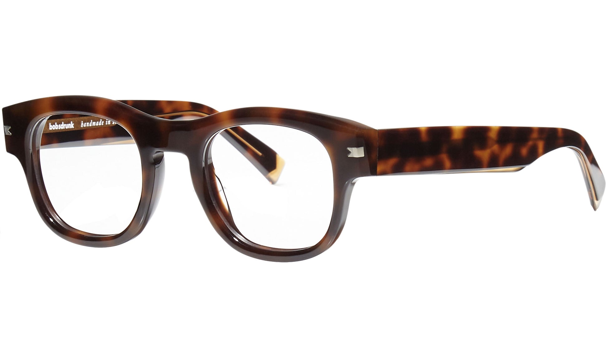Bobsdrunk Luigi optical model in 02 color variant, tortoise. Timeless products and bold shapes coexist in this 2023 optical collection. The lines are masterfully designed to create a “bold lightness” effect.Every pair of glasses is characterized by an emblematic detail shown on the front and on the temple tip, which highlights the value of the brand. The detail represents the union of the initial and final letter of Bobsdrunk in a single symbol. The careful choice of materials, the selection of workmanship and the extensive chromatic research are the prerogatives for every Bobsdrunk creation.