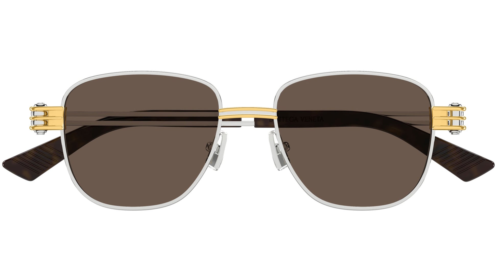 Bottega Veneta BV1380S 001 Shiny Silver Rectangular Sunglasses