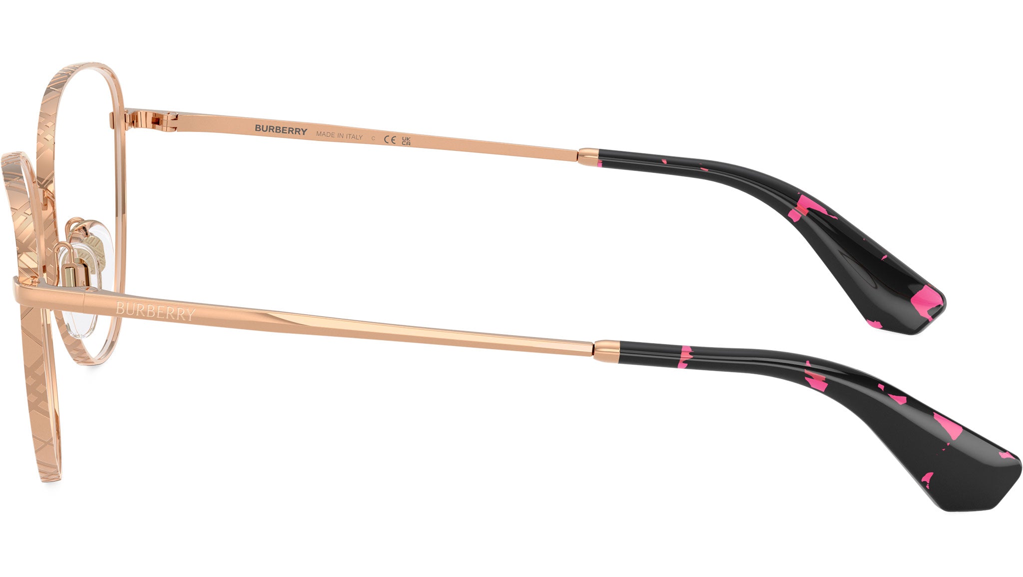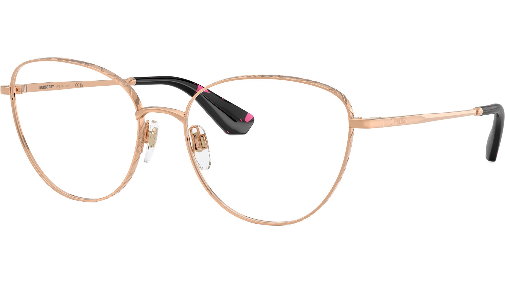 Burberry eyeglasses for women BE1398 1337 featuring rose gold full rim metal frame and demo lenses. Adjustable nosepads. Suggested size: L. Frame line: Metal Check. Brand code: 0BE1398. Color code: 1337. Authorised Burberry Online Reseller. Your glasses will include the original case and accessories and will be covered by 12 month global warranty.