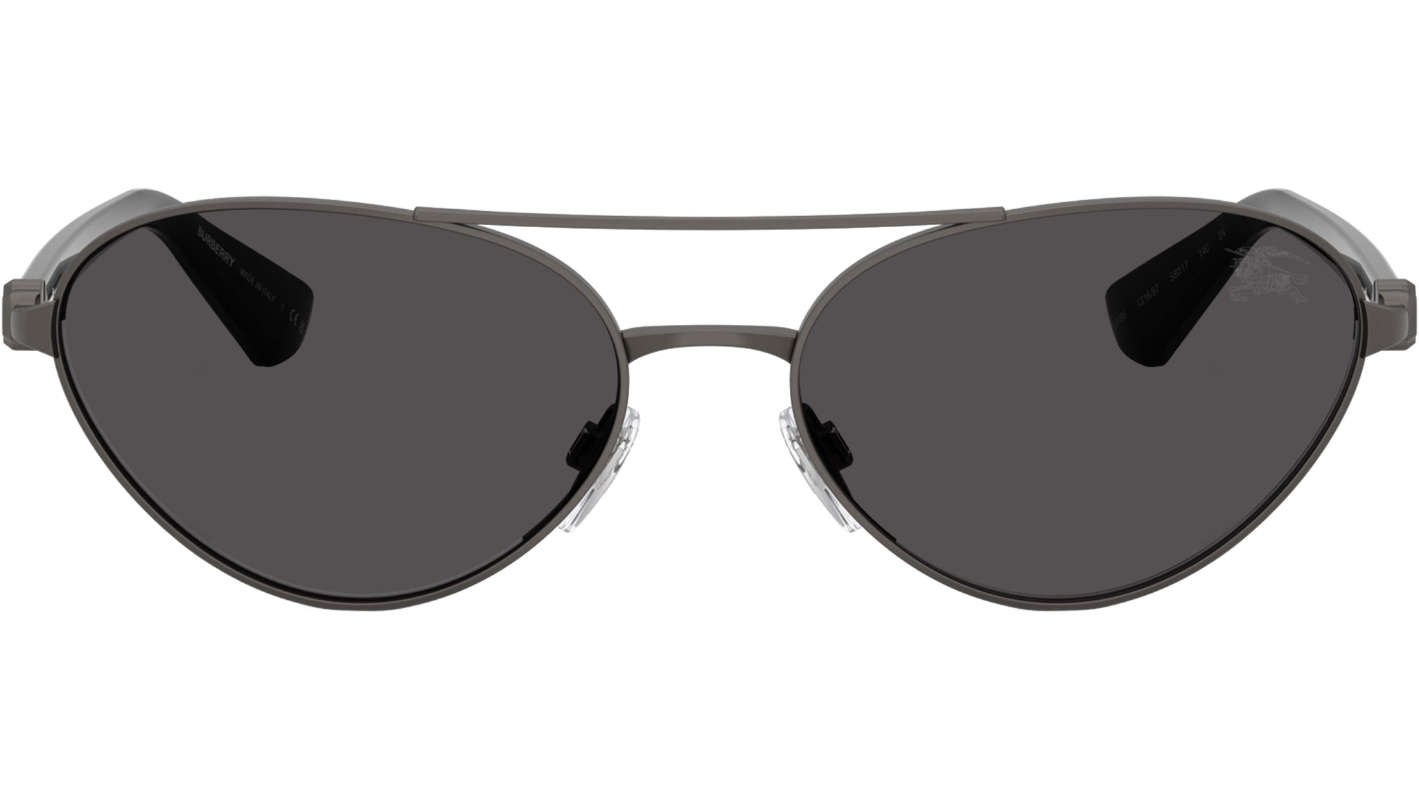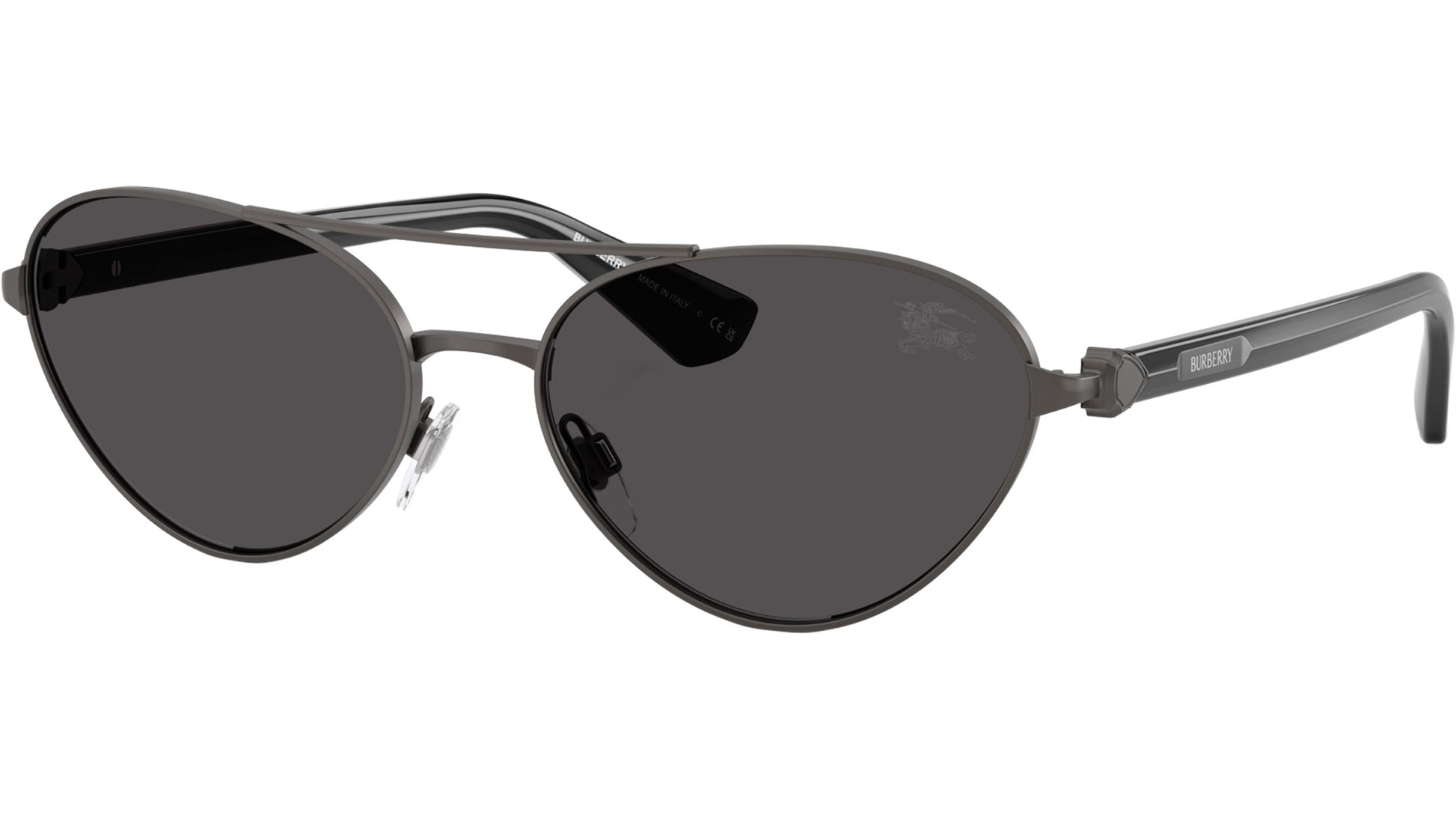 Burberry sunglasses for women BE3165 131687 featuring matte grey full rim metal frame and bio polyamide dark grey lenses. Adjustable nosepads. Suggested size: XL. Frame line: Metal Shield. Brand code: 0BE3165. Color code: 131687. Authorised Burberry Online Reseller. Your glasses will include the original case and accessories and will be covered by 12 month global warranty.
