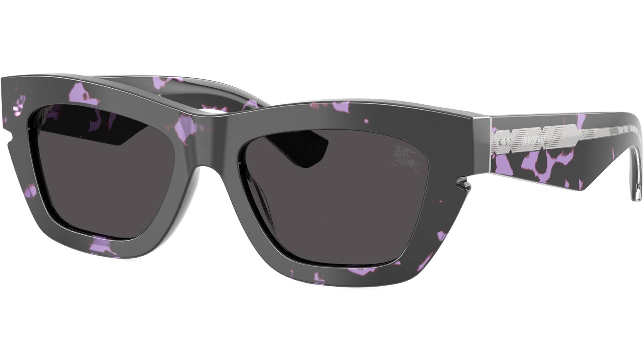 Burberry sunglasses for women BE4454 415987 featuring violet havana full rim acetate frame and bio polyamide dark grey lenses. High bridge fit. Suggested size: M. Frame line: Engraved Check. Brand code: 0BE4454. Color code: 415987. Authorised Burberry Online Reseller. Your glasses will include the original case and accessories and will be covered by 12 month global warranty.
