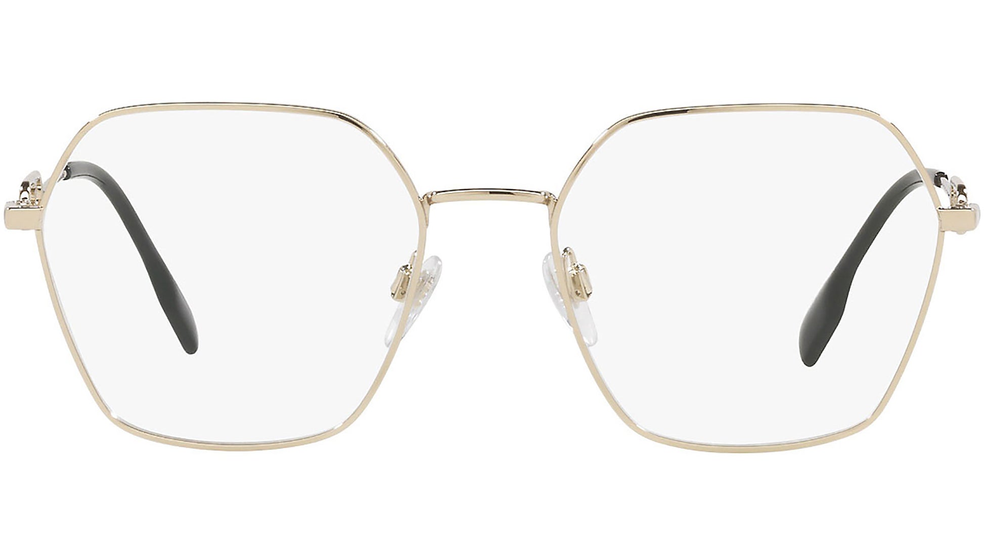 Burberry eyeglasses for women model 1361 featuring light gold full rim metal frame and base 4 curve demo lens. adjustable nosepads. Frame line: Classic Reloaded. Brand code: BE1361. Color code: 1109. Authorised Burberry Online Reseller. Your glasses will come including the original case and accessories and will be covered by 12 month global warranty.