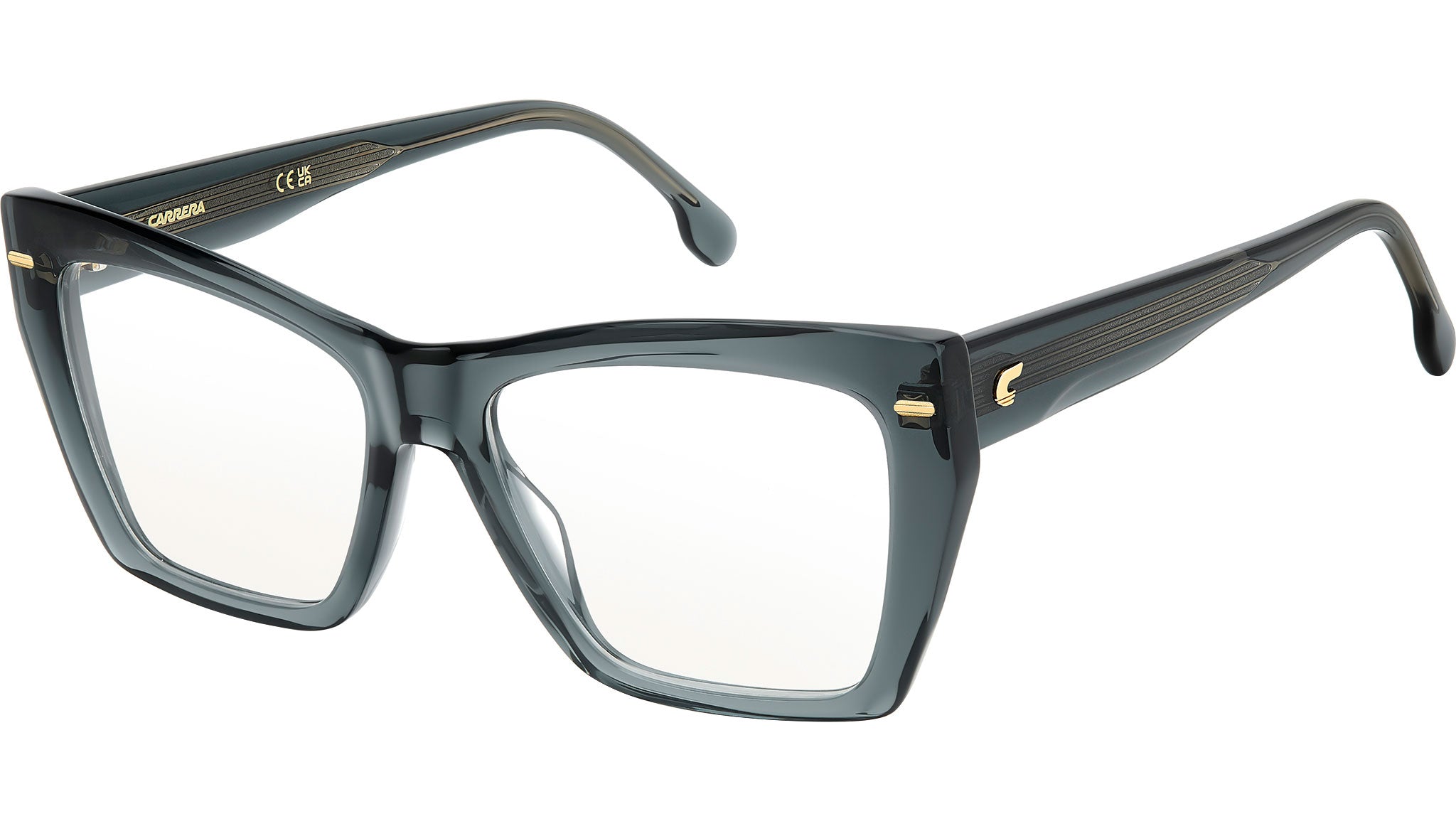 Carrera CARRERA 3064 KB7 glasses for women, featuring grey rectangular acetate frame and demo lens lenses. Carrera plays by its own rules and these women's optical glasses are sure to get noticed. Made of acetate, the frames come in a bold geometric shape. They feature multiple references to the brand, from the chiselled flag rivets to in the ‘C’ on the temples. Of the different colourways, those with the visible metal core on the inside stand out. A lightweight design ensures they can be worn day after day. Brand line: Signature. Style code: 109431. Color code: KB7. Authorized Carrera online reseller. Your glasses will include the original case and accessories and are covered by a 12-month global warranty.