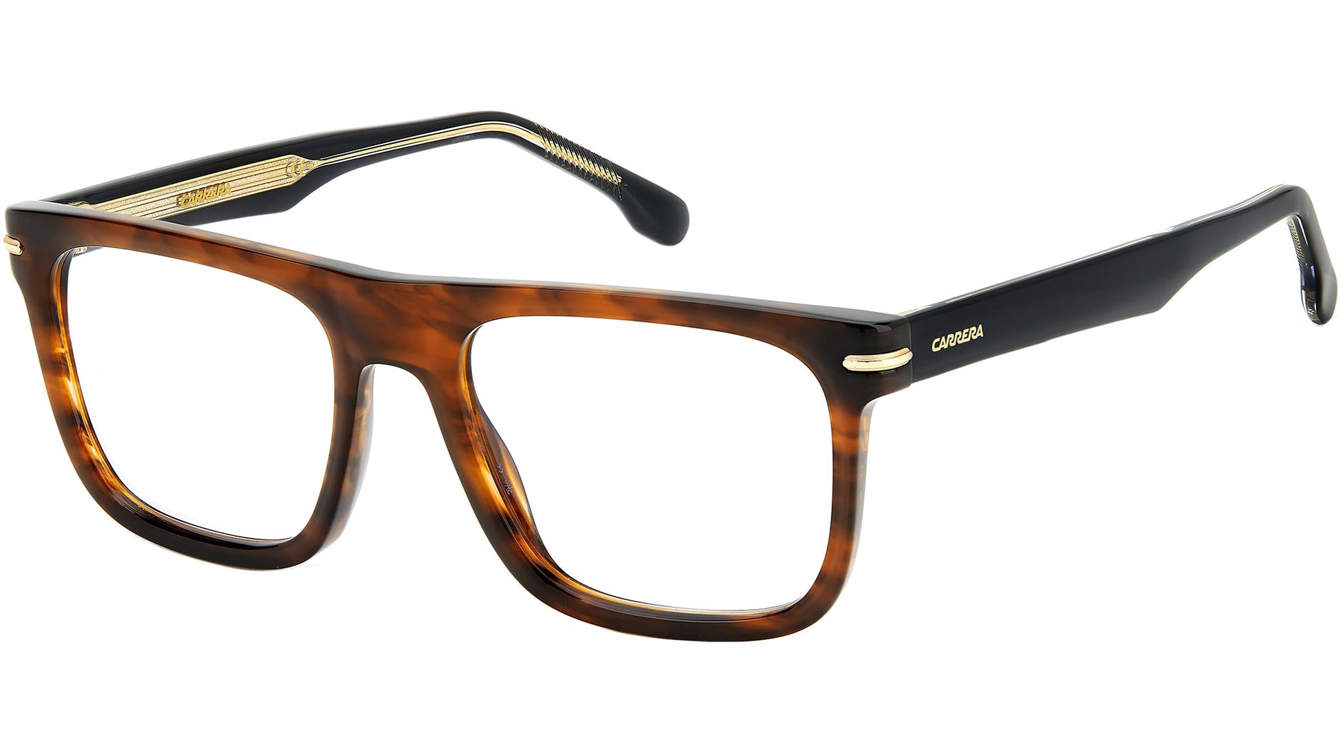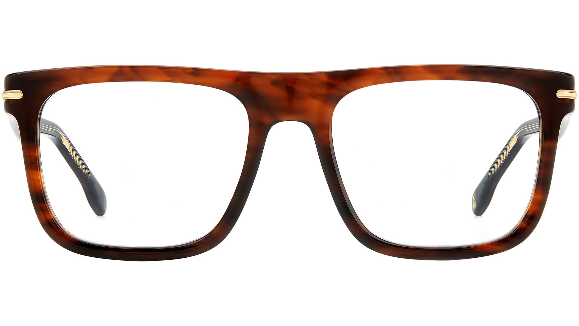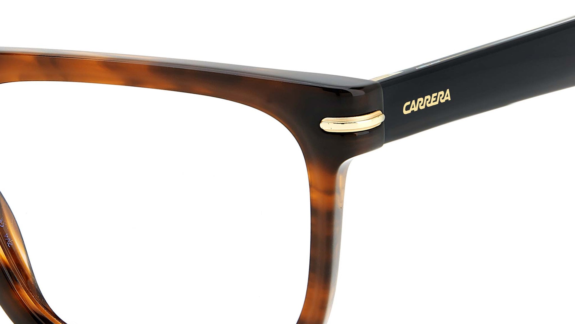 Carrera optical frame model 312 color code 086 Havana. Destined to re-write the rules, these eyeglasses juxtapose vintage references with bold contemporary frames. Flat along the brow line, the 100% acetate structure even comes in a version with a multi-layer front. The timeless hues create contrast with the metal detail on the outer corners to give everyday looks a true boost. The temples are a tribute to the brand's history, with their 'fin' silhouette, rendered even more notable thanks to the visible core and the Carrera logo.