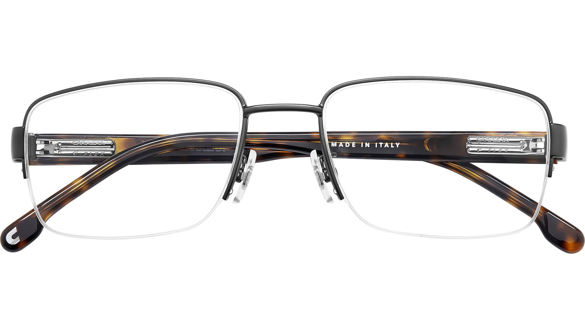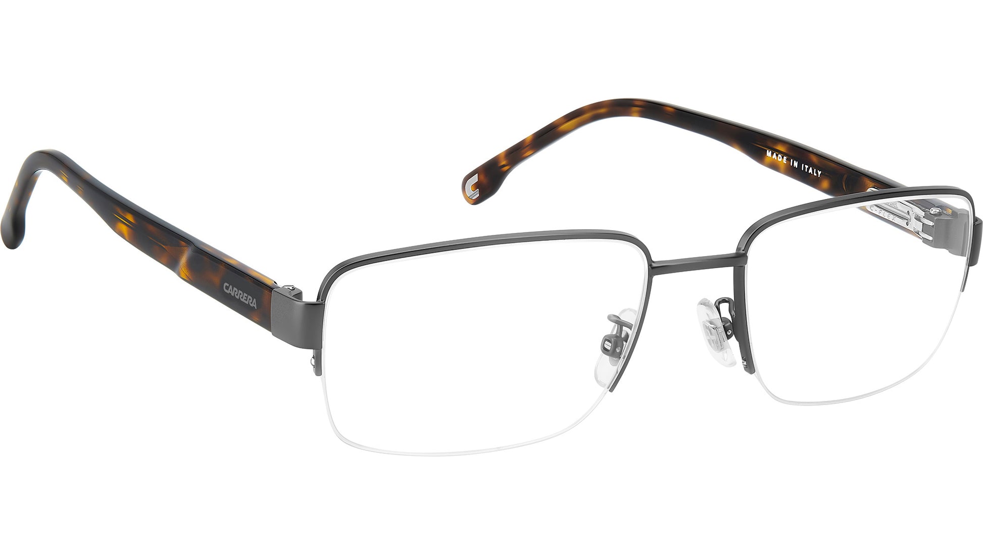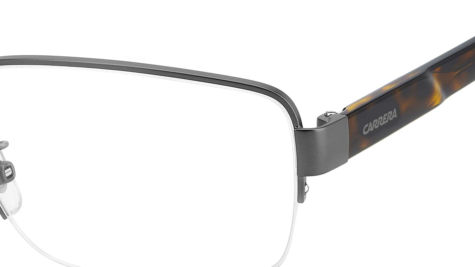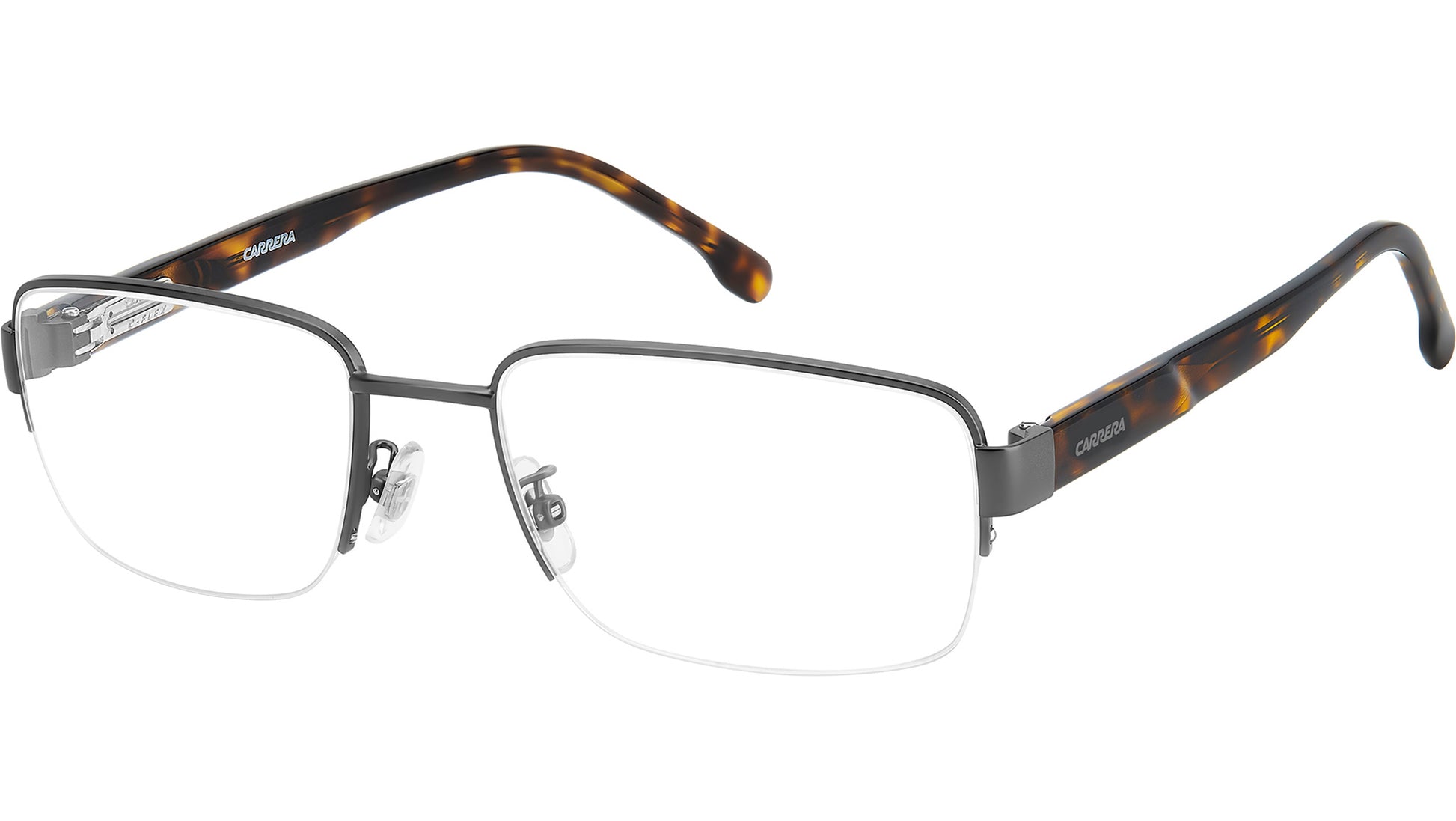 Carrera C FLEX 05/G R80 glasses for men, featuring matte dark ruthenium rectangular metal frame and demo lens lenses. Brand line: Signature. Style code: 108076. Color code: R80. Authorized Carrera online reseller. Your glasses will include the original case and accessories and are covered by a 12-month global warranty.