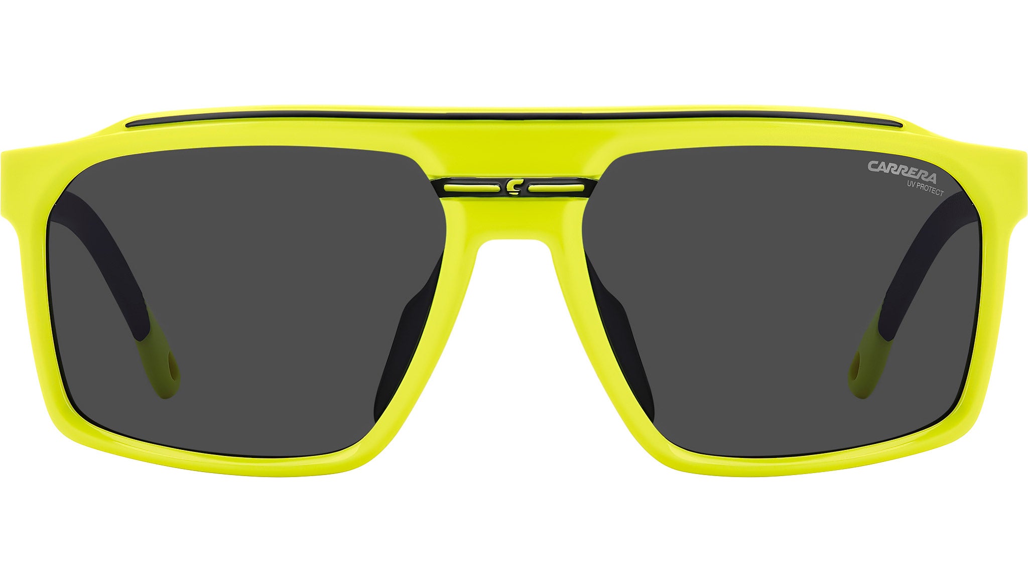Carrera C SPORT 04/S 4CW IR sunglasses for men, featuring yellow black rectangular injection frame and grey lenses. With a nod to activewear and the bold design which Carrera is known for, these sunglasses are perfection. Faithful to its style, the brand offers a front which is flat along the top and embellished by a horizontal flag with the iconic ‘C’. In addition to their aesthetic, the rubberised nose pads and the option to fit them with prescription sun lenses makes them comfortable and practical. The temples are straight to ensure they slide easily under a helmet, and stabilized thanks to curved end tips and click-stop hinges. Brand line: Sport. Style code: 207989. Color code: 4CW IR. Authorized Carrera online reseller. Your glasses will include the original case and accessories and are covered by a 12-month global warranty.