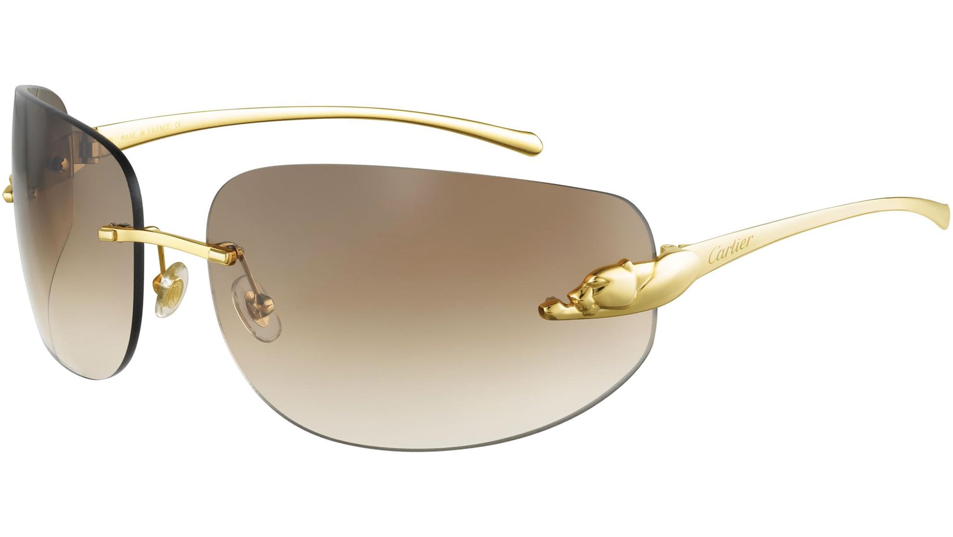 Cartier CT0062S 002 sunglasses with gold frame and brown lens.