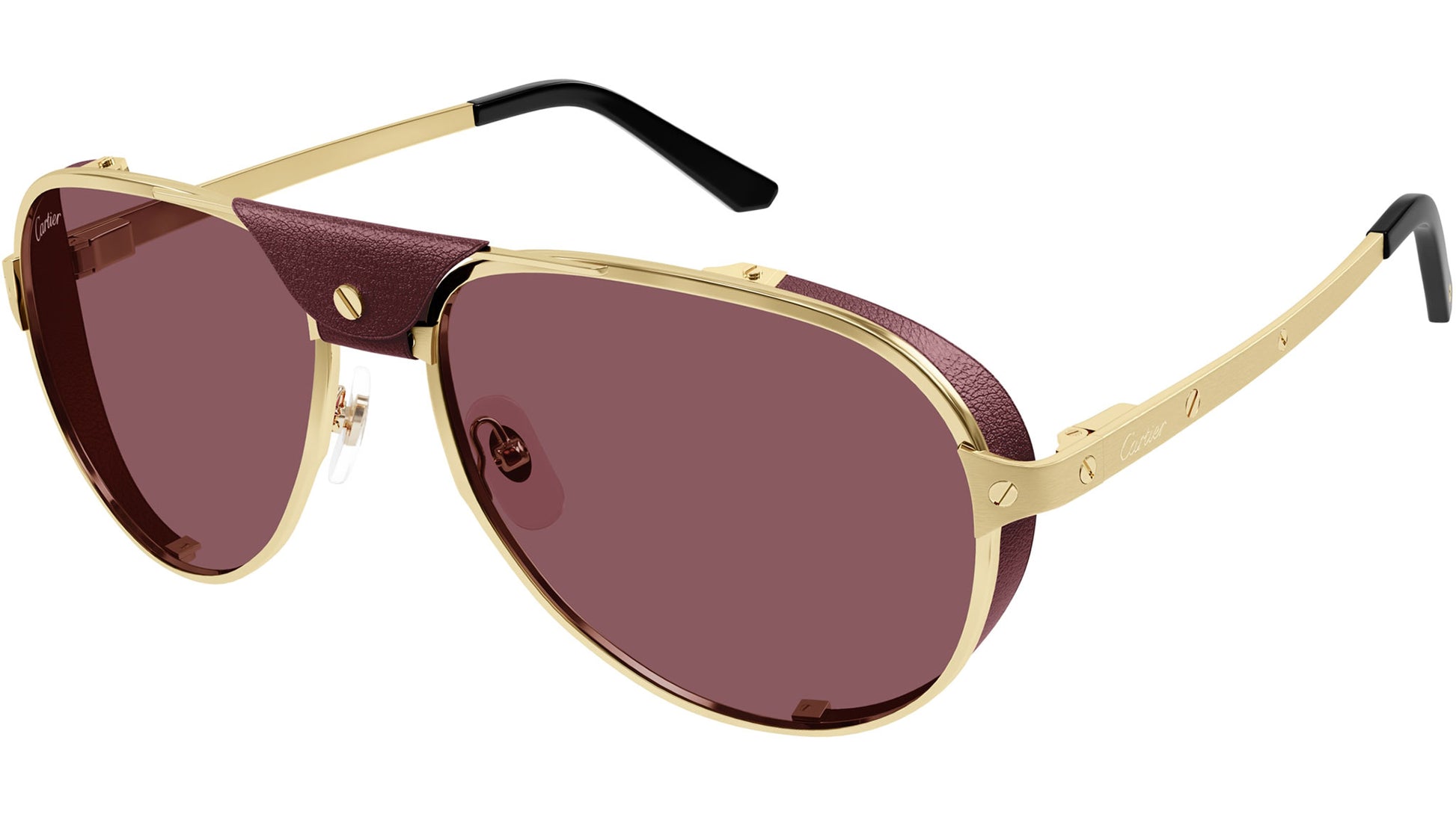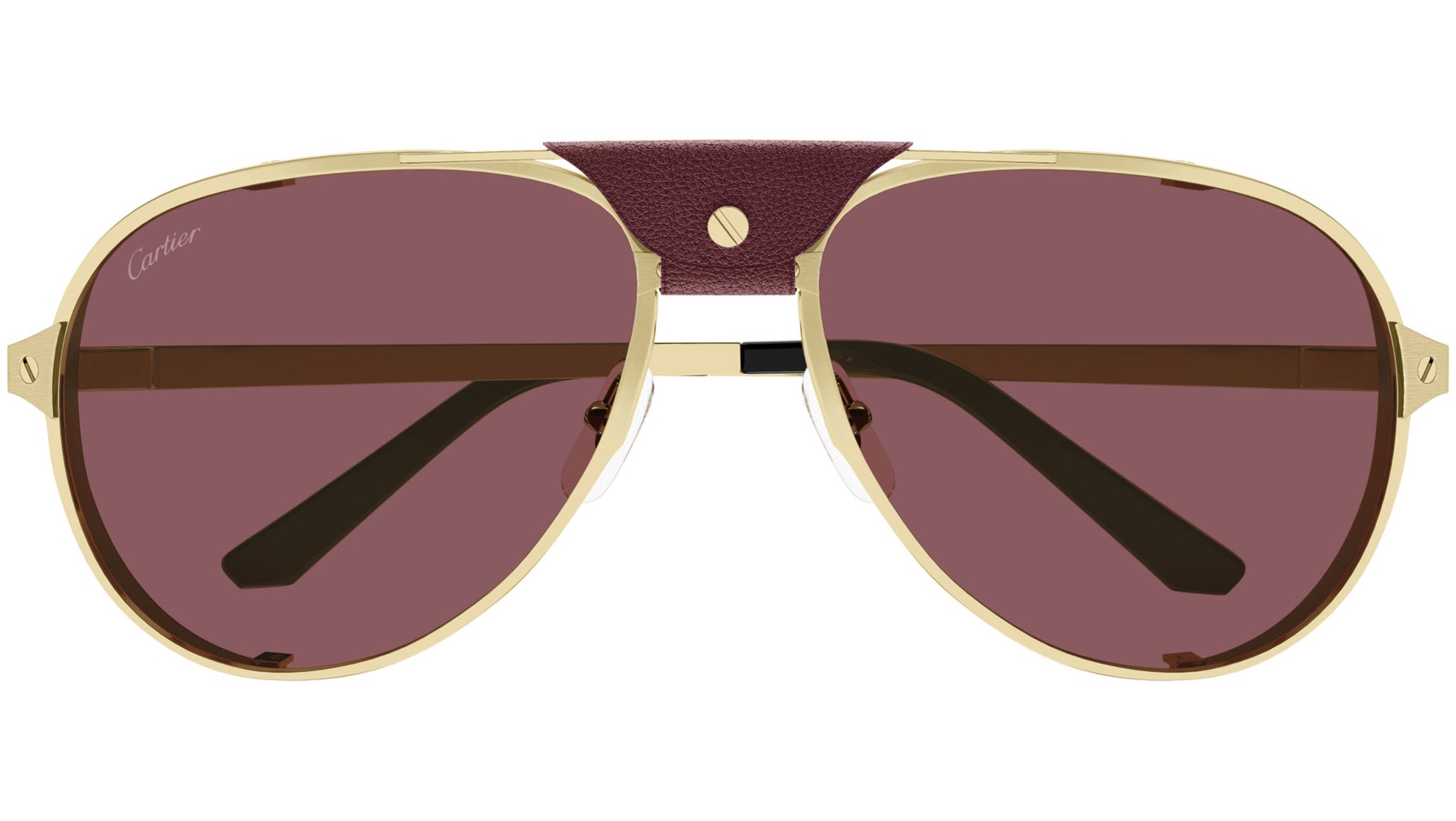 - Frame Color smooth and brushed golden finish with bordeaux leather nose