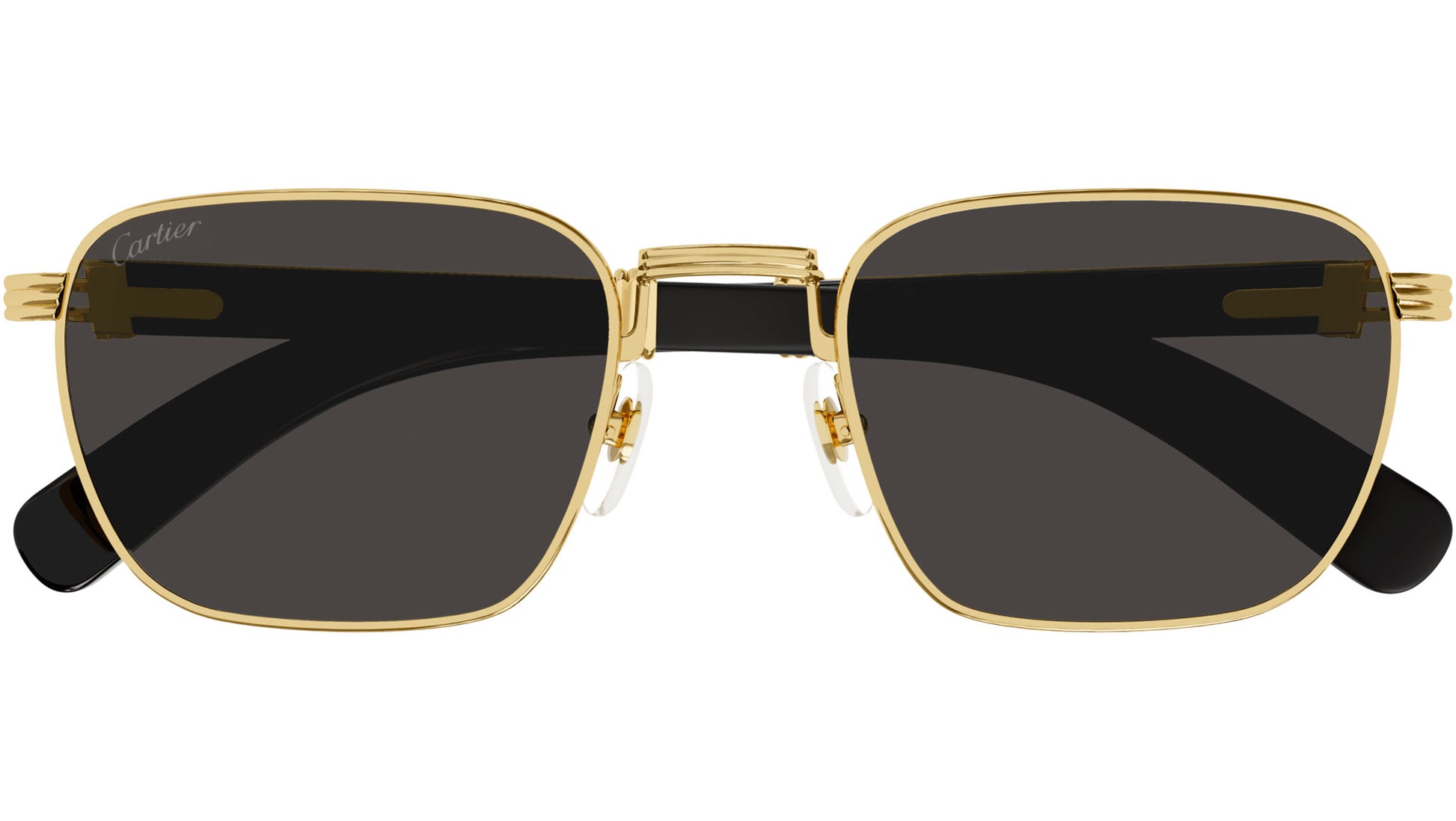 Cartier Exception sunglasses collection model CT0363S 001 featuring smooth golden finish frame and grey lens.