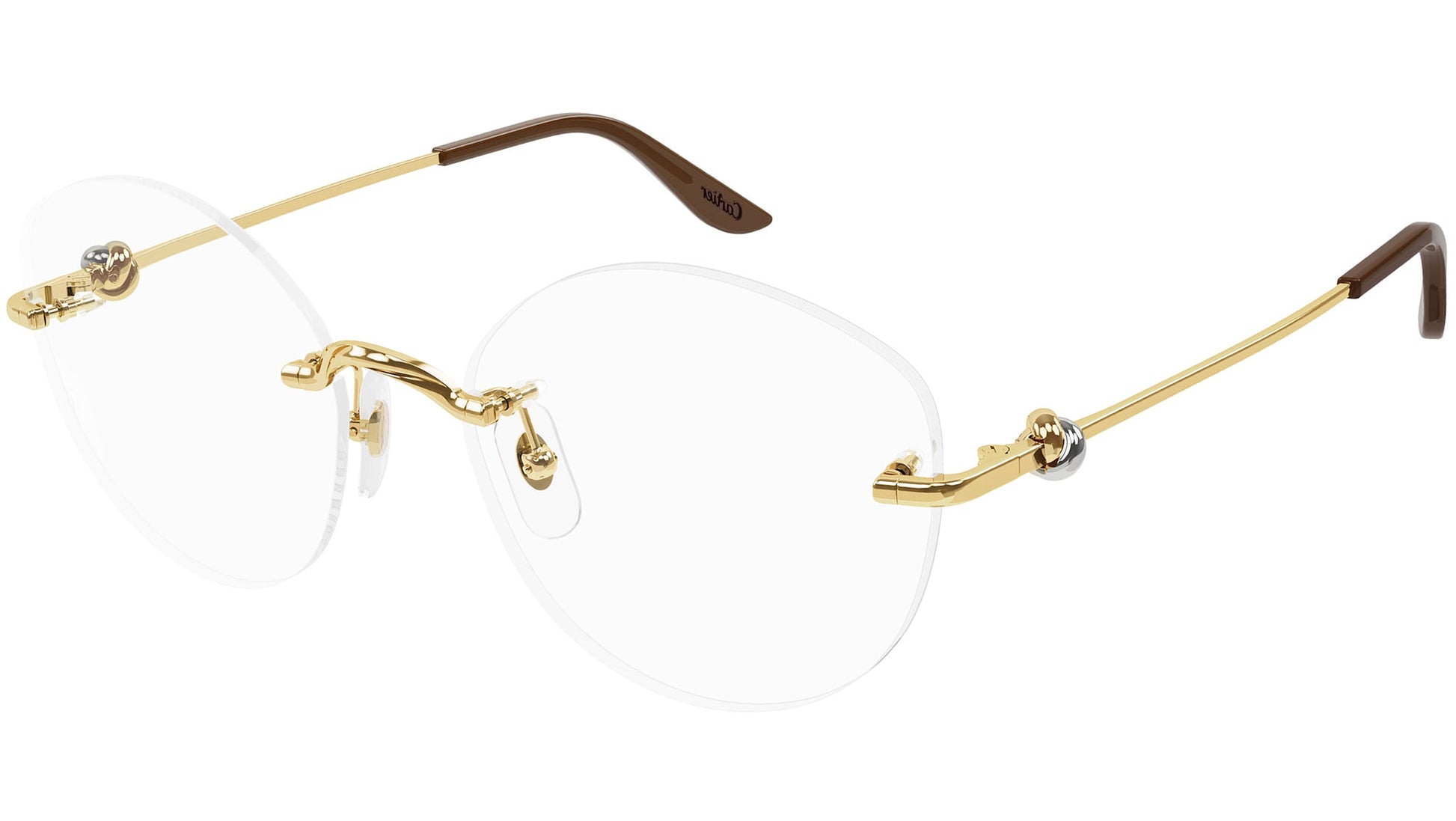Cartier Core Range optical collection model CT0376O 001 featuring smooth golden finish frame and gold temple.