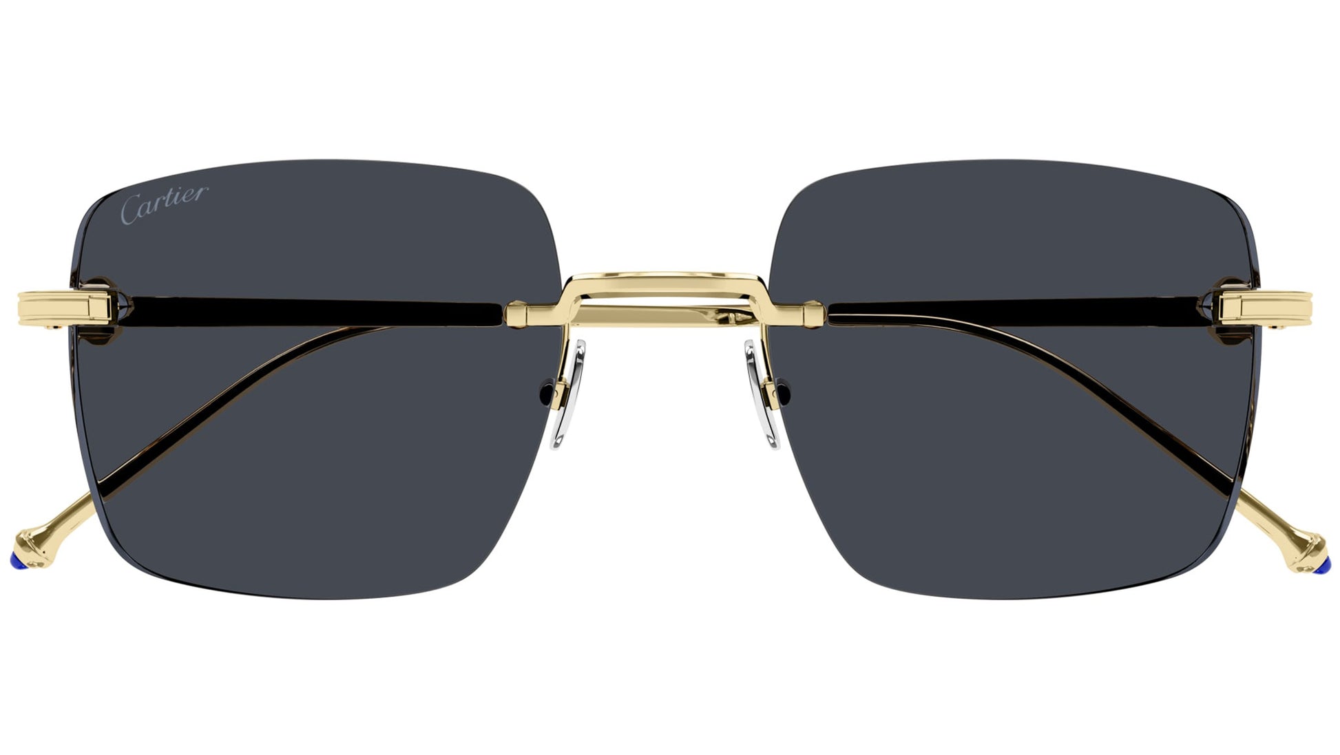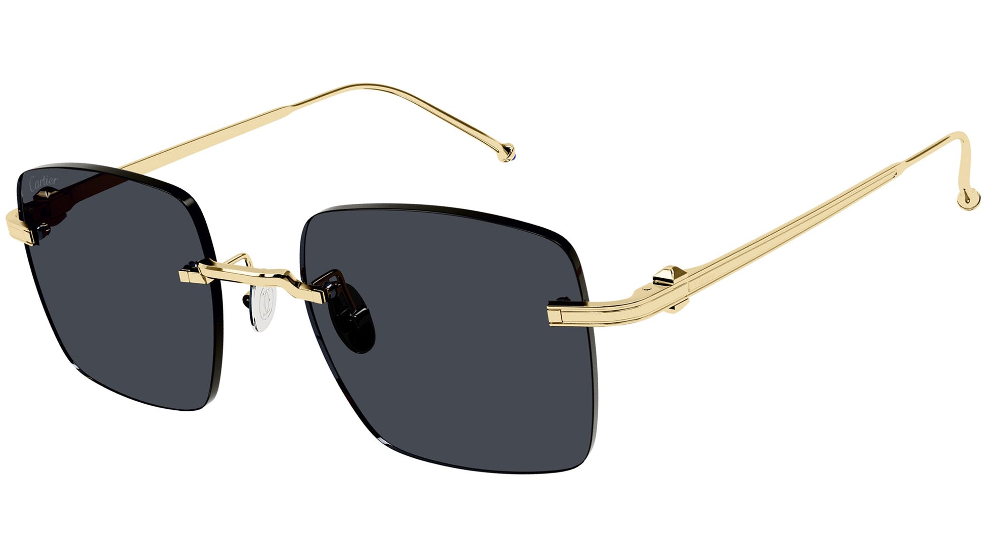 Cartier Exception sunglasses collection model CT0403S 002 featuring smooth golden finish frame and grey lens.