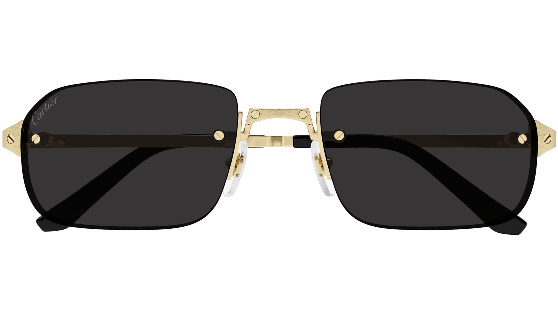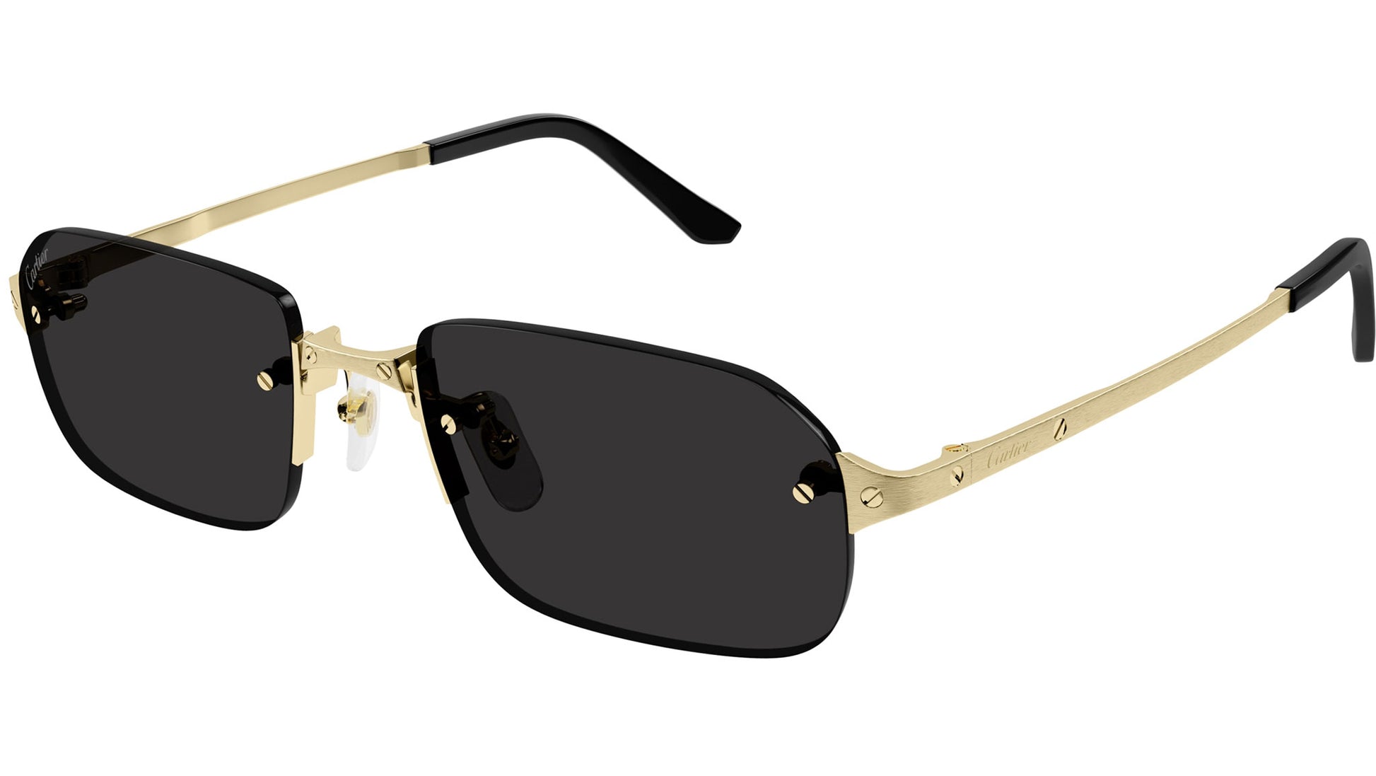 Cartier Core Range sunglasses model CT0460S rectangle metal frame color code 001 brushed smooth golden finish with gold temple and grey lens.