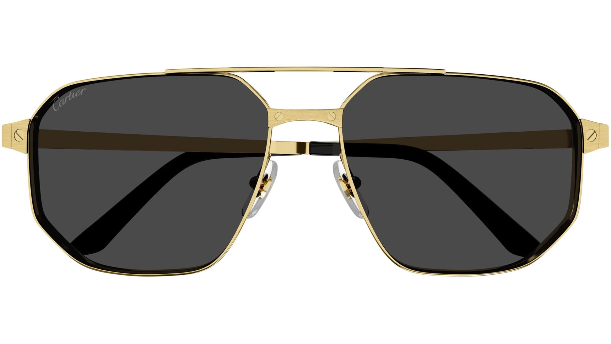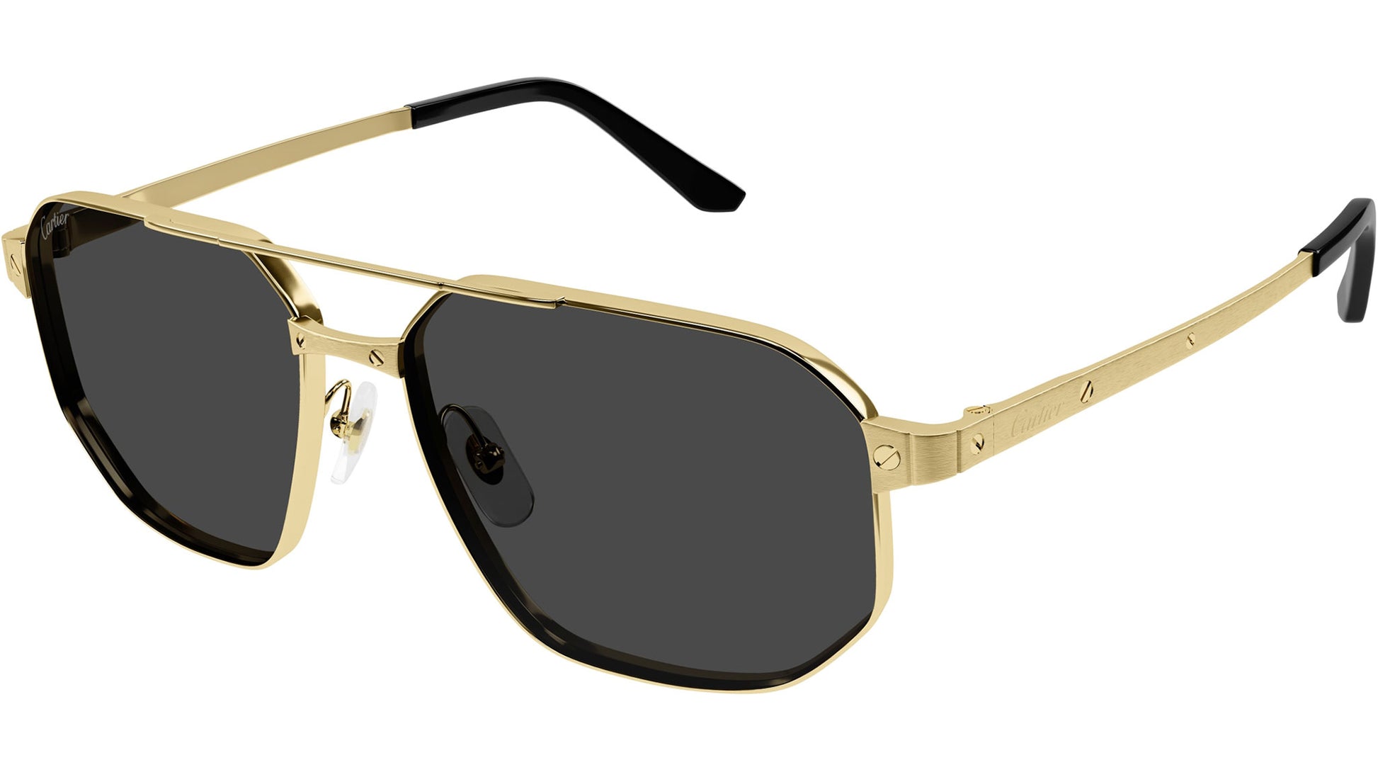 Cartier Core Range sunglasses model CT0462S aviator metal frame color code 001 smooth brushed golden finish with gold temple and black polarized lens.