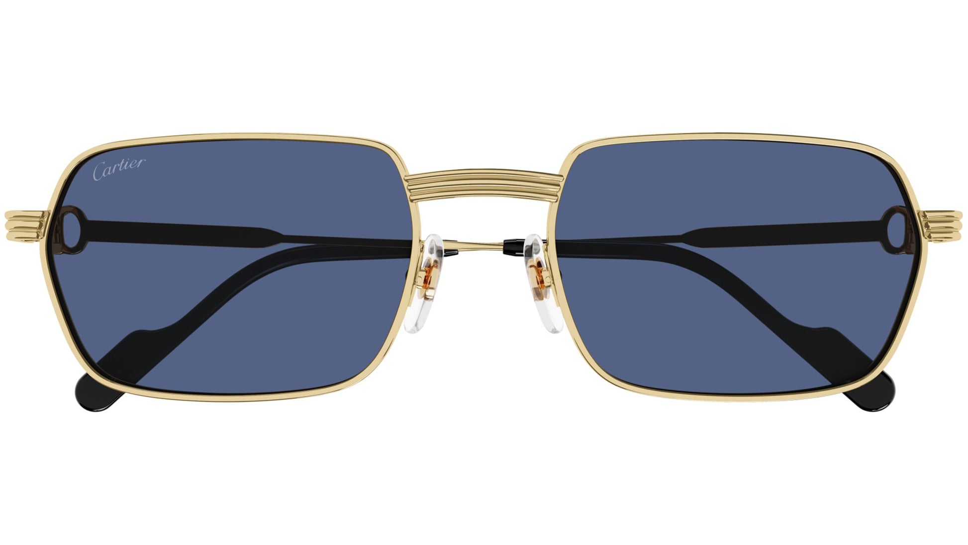Cartier Core Range sunglasses model CT0463S rectangle metal frame color code 003 smooth golden finish with gold temple and blue lens.