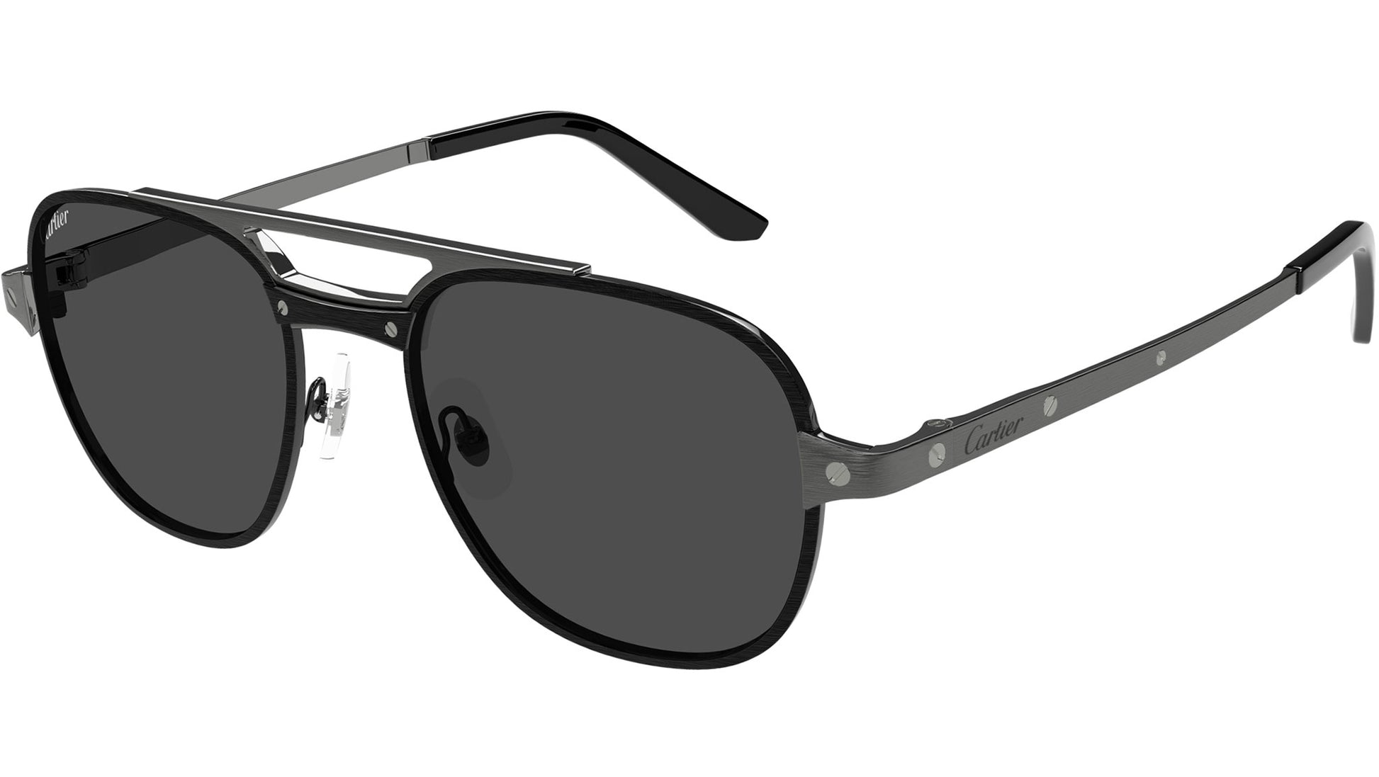 Cartier Exception sunglasses model CT0477S aviator metal frame color code 002 brushed black pvd finish and brushe with ruthenium temple and ultra black polarized lens.