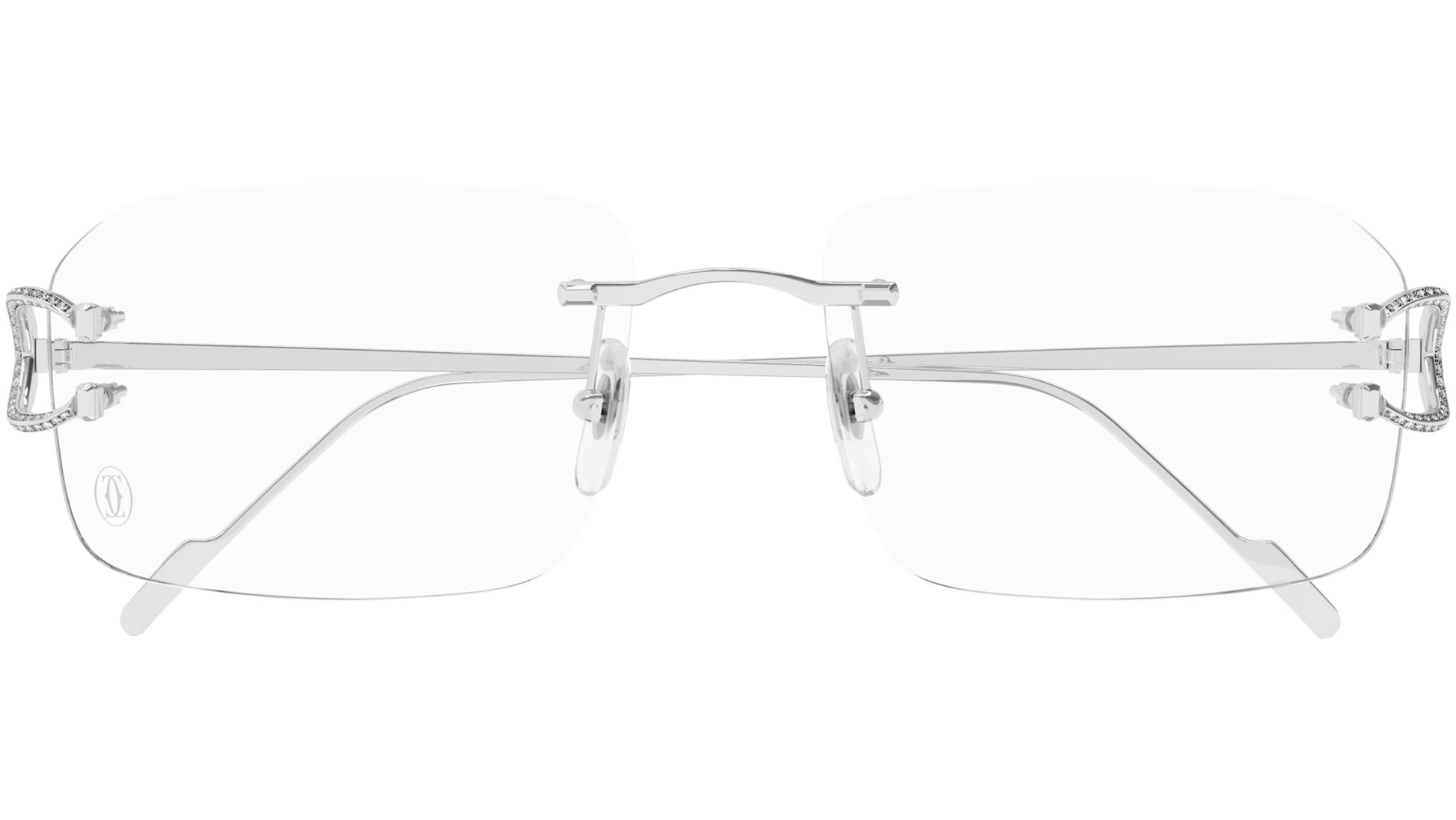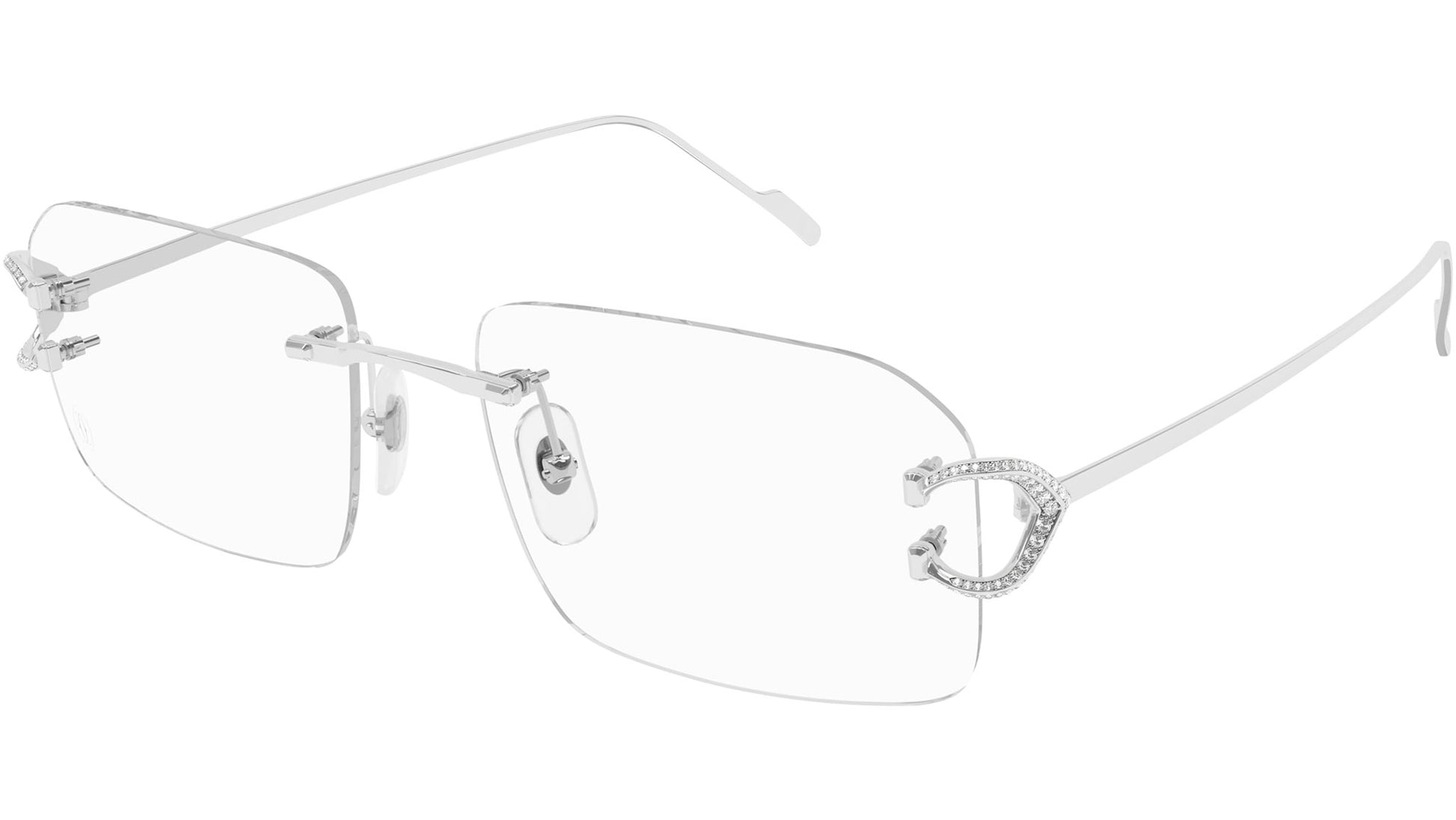 Cartier Precious eyewear model CT0489O rectangle gold glasses color code 003 white solid gold with silver temple and recycled demo lens with hard coating and AR blue out.
