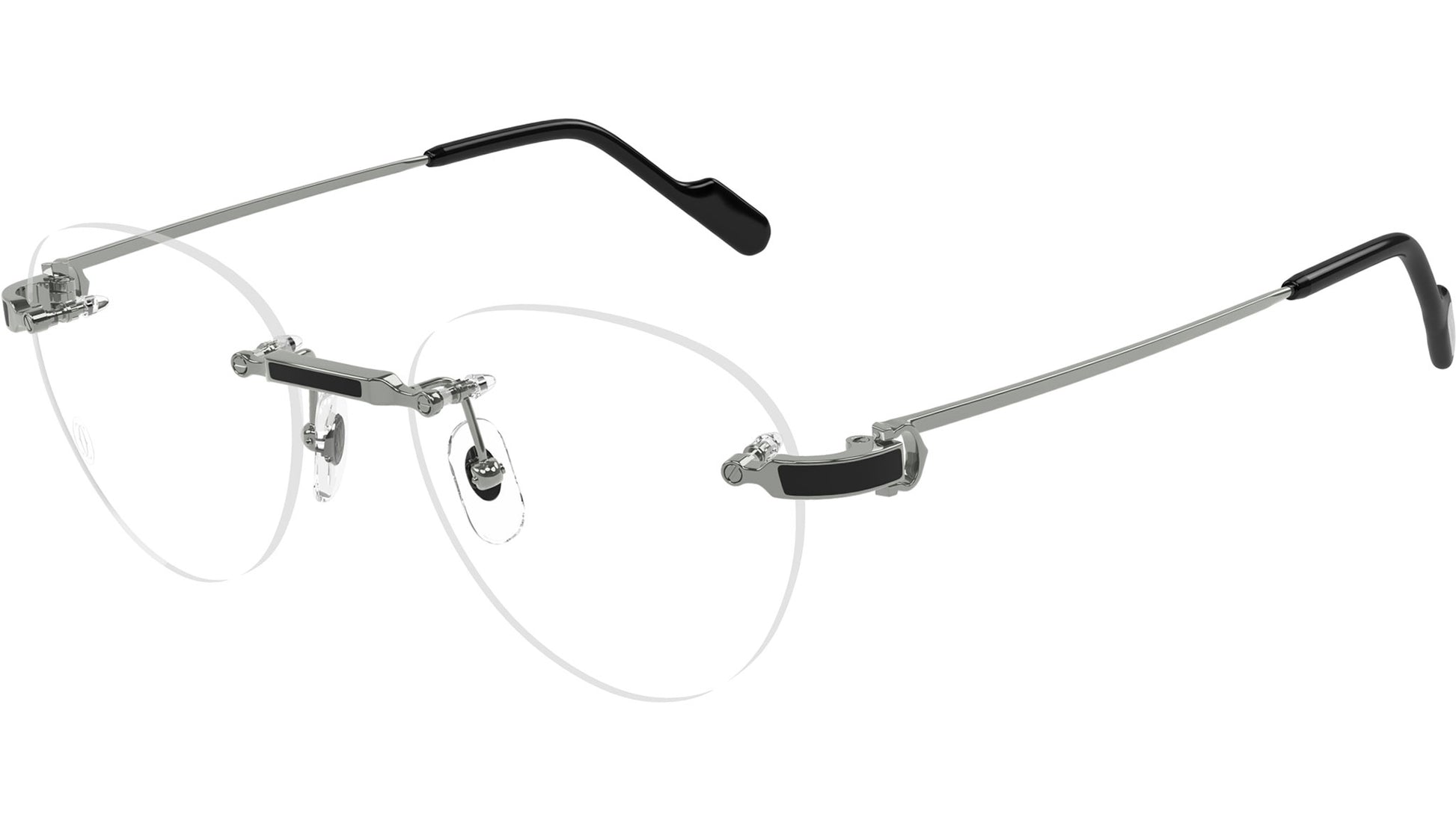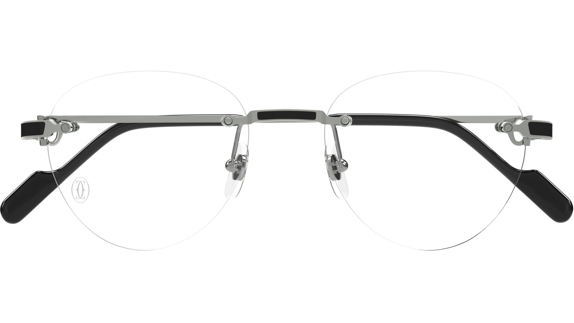 Cartier Exception eyewear model CT0517O panthos metal glasses color code 003 smooth ruthenium finish with ruthenium temple and recycled demo lens with hard coating and AR blue out.