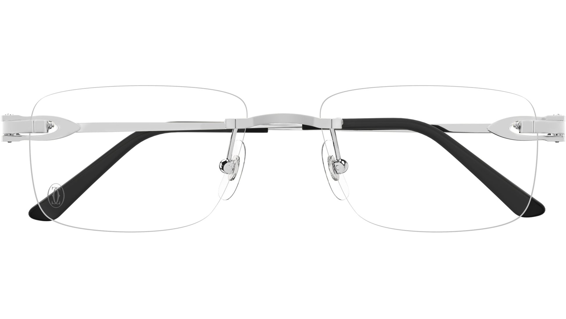 Cartier Core Range eyewear model CT0521O rectangle metal glasses color code 002 smooth platinum finish with silver temple and recycled demo lens with hard coating and AR blue out.