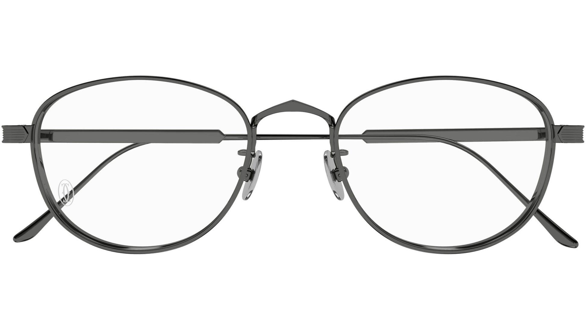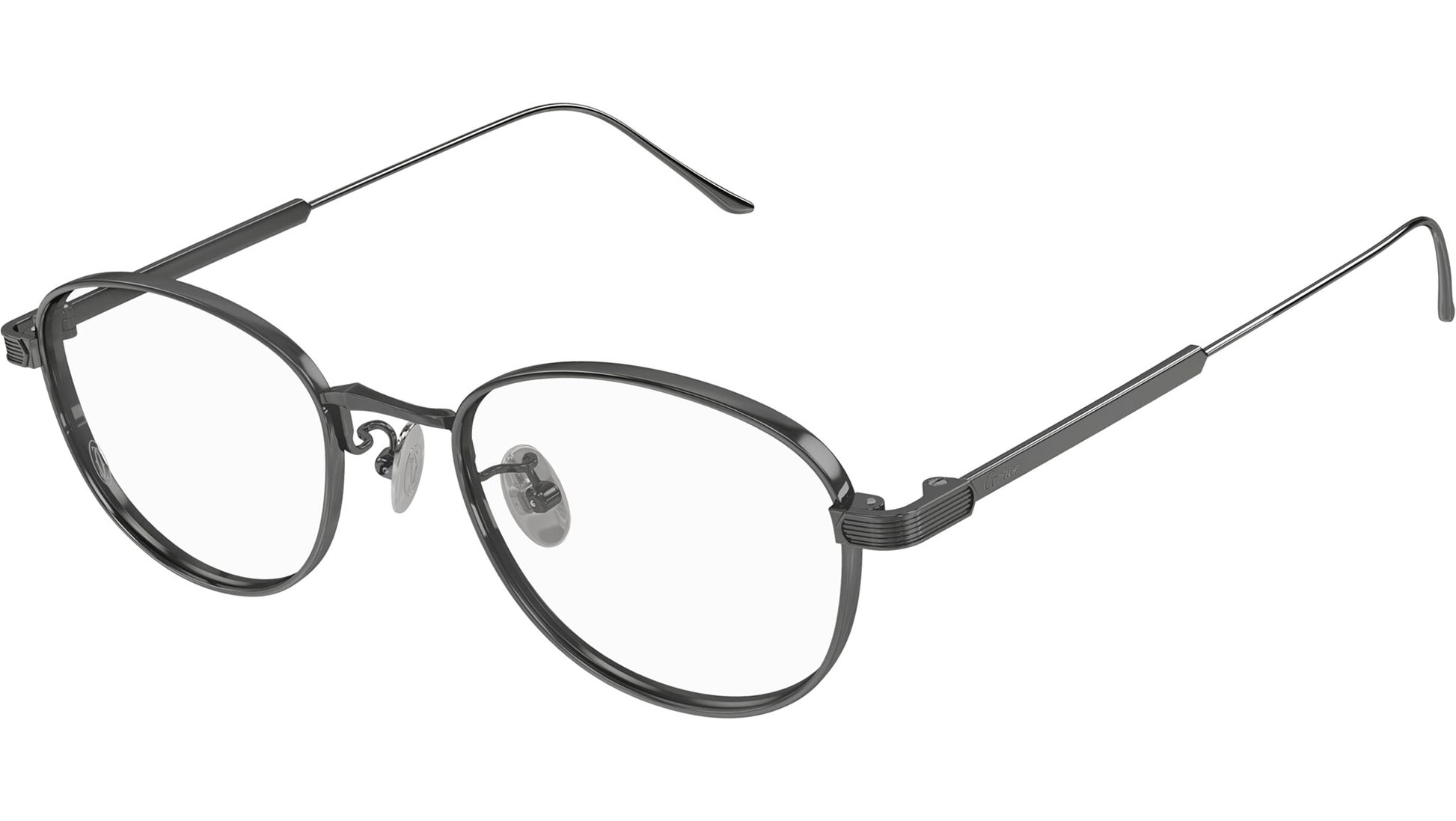 Cartier CT0562OA 003 glasses for men and woman, featuring smooth dark ruthenium finish oval titanium frame and recycled demo lens with hard coating and AR blue out . Brand line: Core Range. Style code: CT0562OA. Color code: 003. Made in Japan. Authorized Cartier online reseller. Your glasses will include the original case and accessories and are covered by a 12-month global warranty.