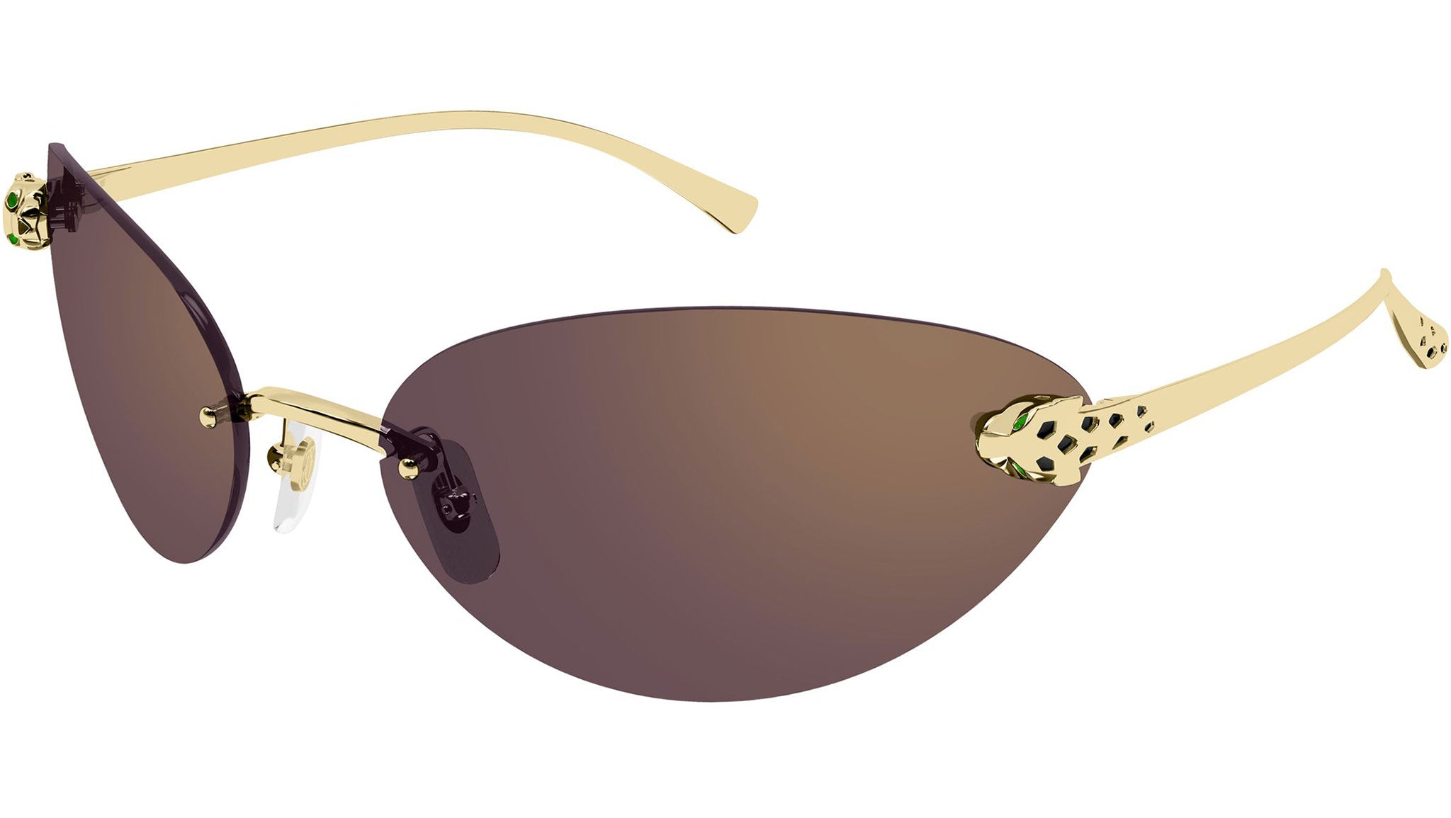 Cartier CT0635S 004 sunglasses for women, featuring smooth golden finish cat eye metal frame and wine / golden flash nylon lenses. Brand line: Exception. Style code: CT0635S. Color code: 004. Made in Italy. Authorized Cartier online reseller. Your glasses will include the original case and accessories and are covered by a 12-month global warranty.