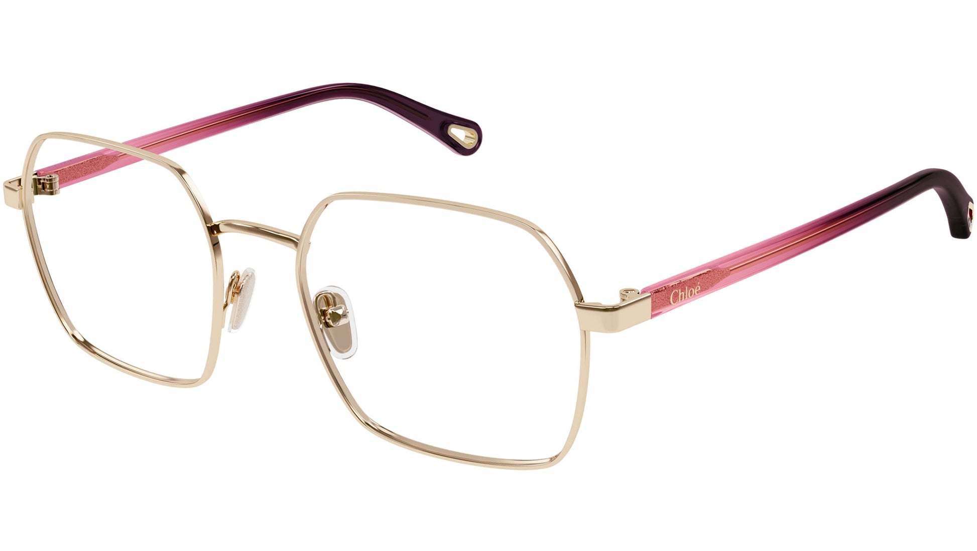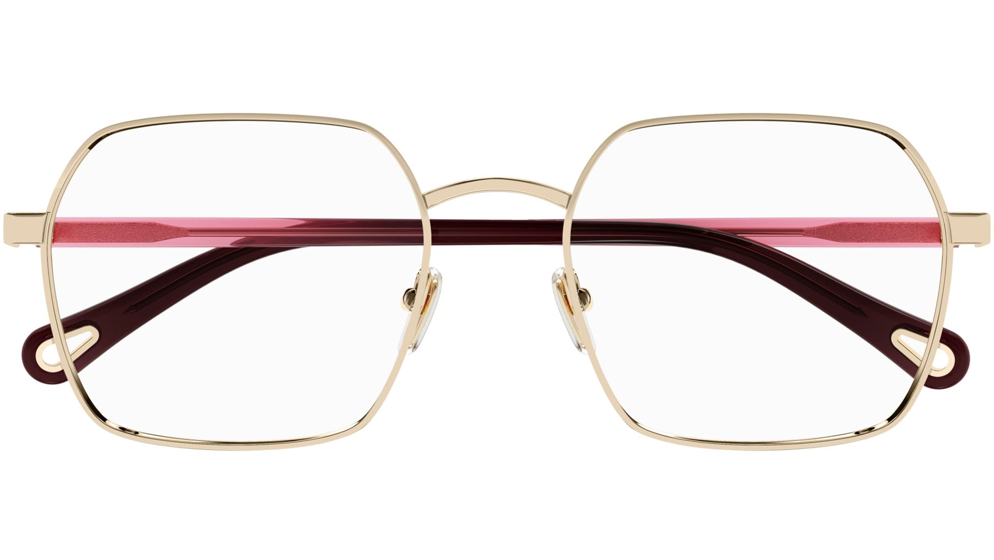 Chloé CH0268O 002 glasses for women, featuring shiny rose gold rectangular metal frame and demo lenses. Brand line: Chloé. Style code: CH0268O. Color code: 002. Made in Italy. Authorized Chloé online reseller. Your glasses will include the original case and accessories and are covered by a 12-month global warranty.