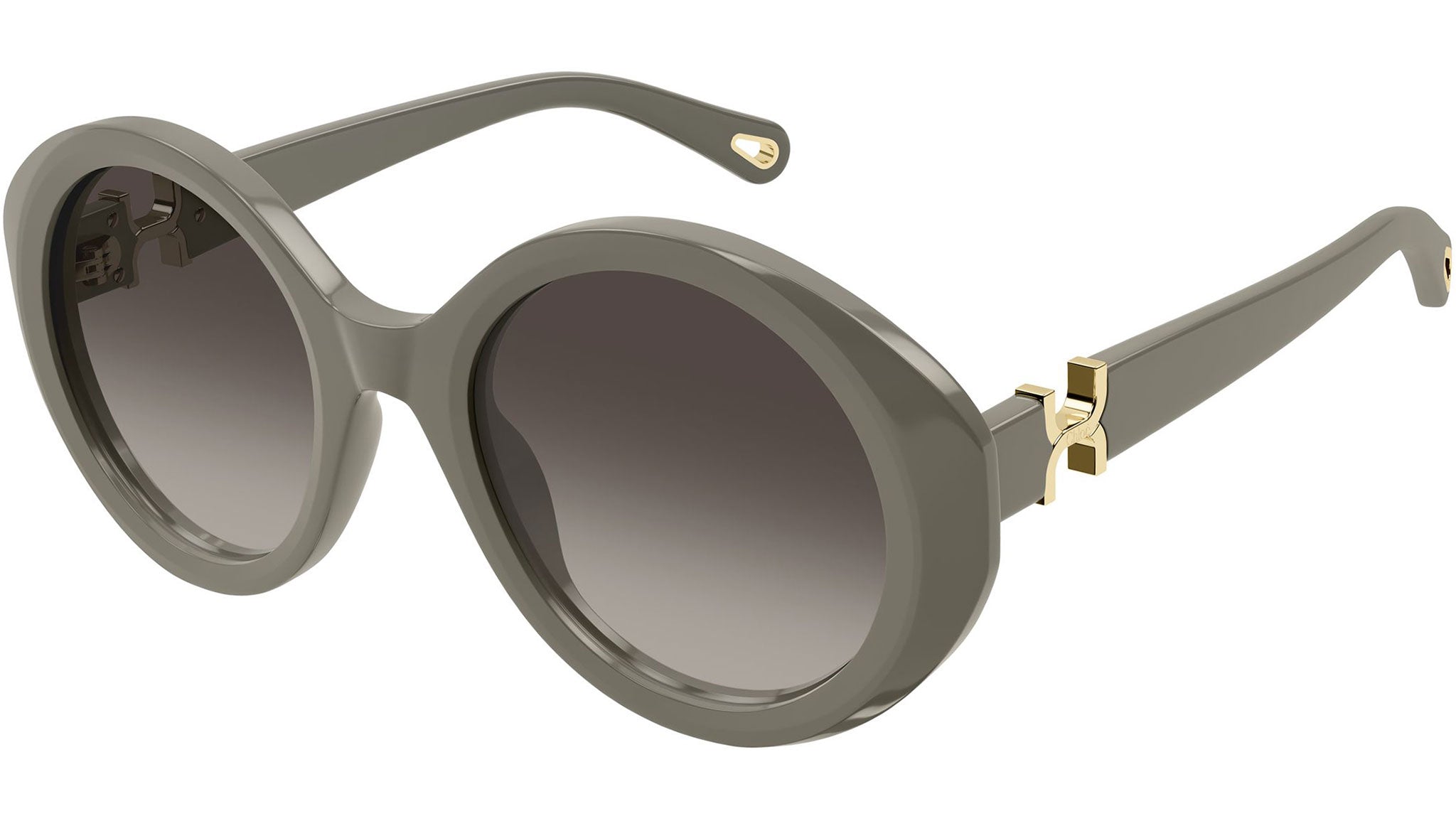 Chloé CH0332S 004 sunglasses for women, featuring shiny solid khaki grey panthos recycled acetate frame and gradient warm grey bio nylon lenses. Brand line: Chloé. Style code: CH0332S. Color code: 004. Made in Japan. Authorized Chloé online reseller. Your glasses will include the original case and accessories and are covered by a 12-month global warranty.
