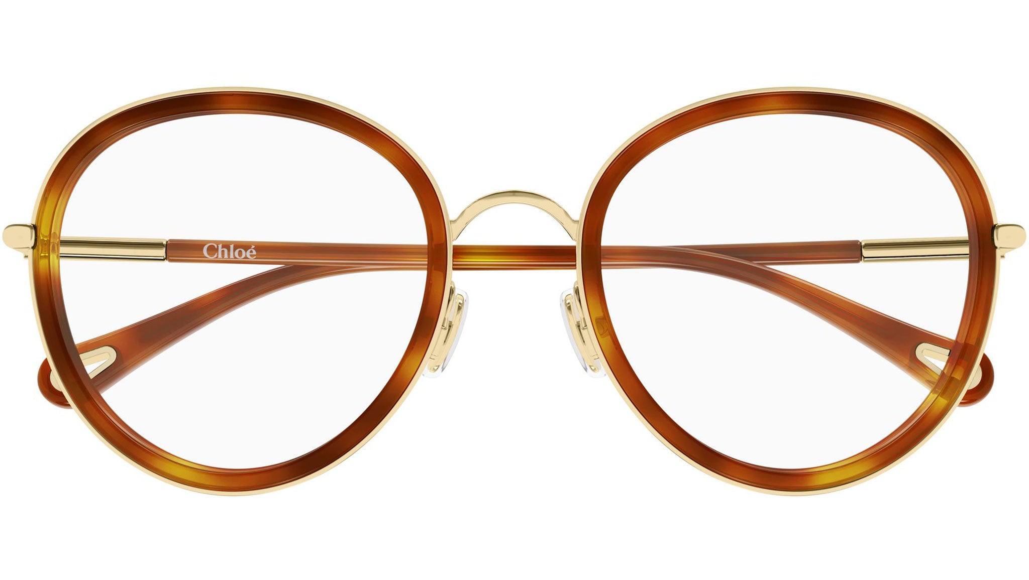 Chloé CH0374O 002 glasses for women, featuring shiny classic gold panthos metal frame and demo lenses. Brand line: Chloé. Style code: CH0374O. Color code: 002. Made in Italy. Authorized Chloé online reseller. Your glasses will include the original case and accessories and are covered by a 12-month global warranty.
