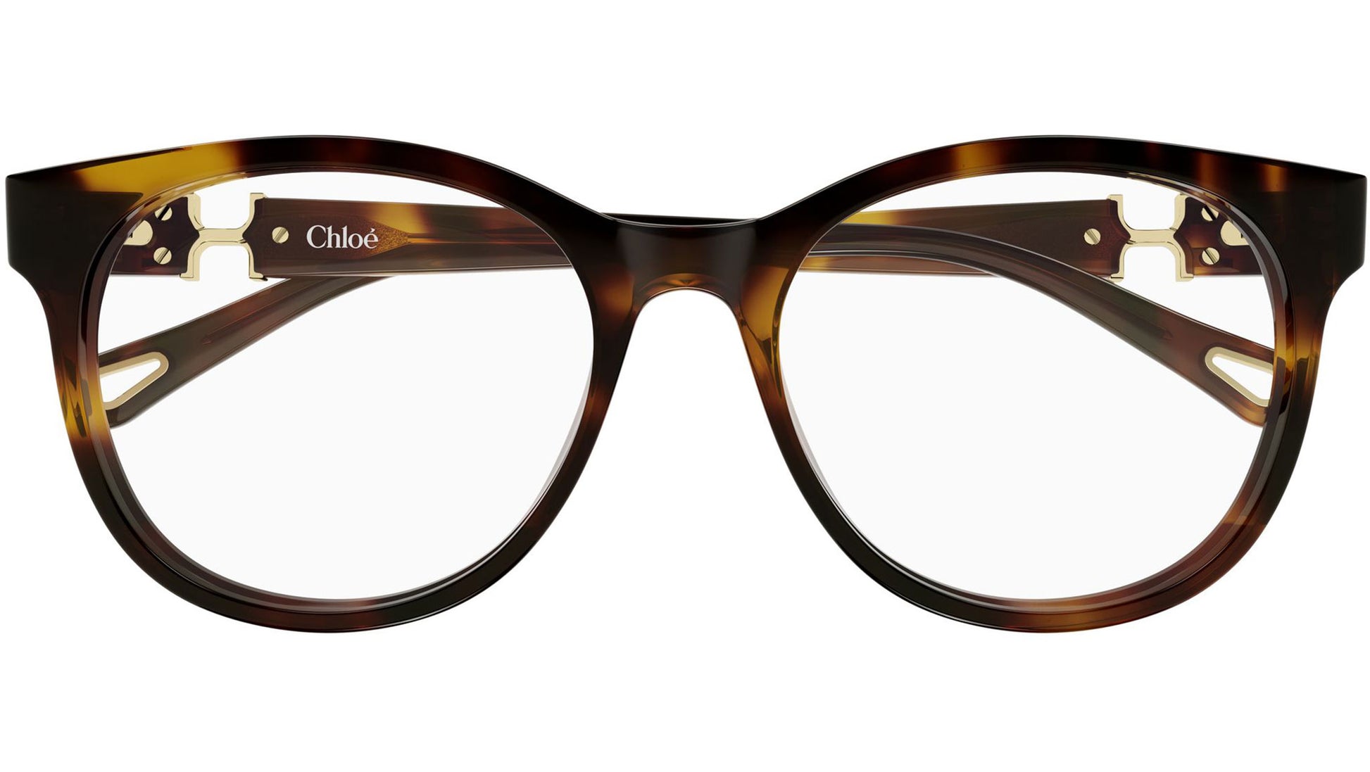 Chloé CH0375O 002 glasses for women, featuring shiny dark havana panthos recycled acetate frame and demo lenses. Brand line: Chloé. Style code: CH0375O. Color code: 002. Made in Japan. Authorized Chloé online reseller. Your glasses will include the original case and accessories and are covered by a 12-month global warranty.