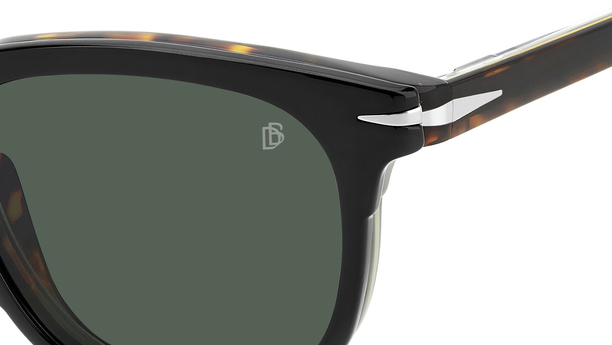 David Beckham sunglasses model DB 7120/CS color code PHW UC havana green. These eyeglasses with clip-on sun lenses are classic yet undeniably cool. Perfect for every adventure, the sun lenses attach to the frames quickly and easily, for impeccable vision even on bright, sunny days. The acetate structure comes in plain or two-tone colorways, and with temples with a visible wire core. David Beckham's signature details are a must: the stylized rhombus, the full name of the brand on the inner temple, and the monogram on the sun lenses.