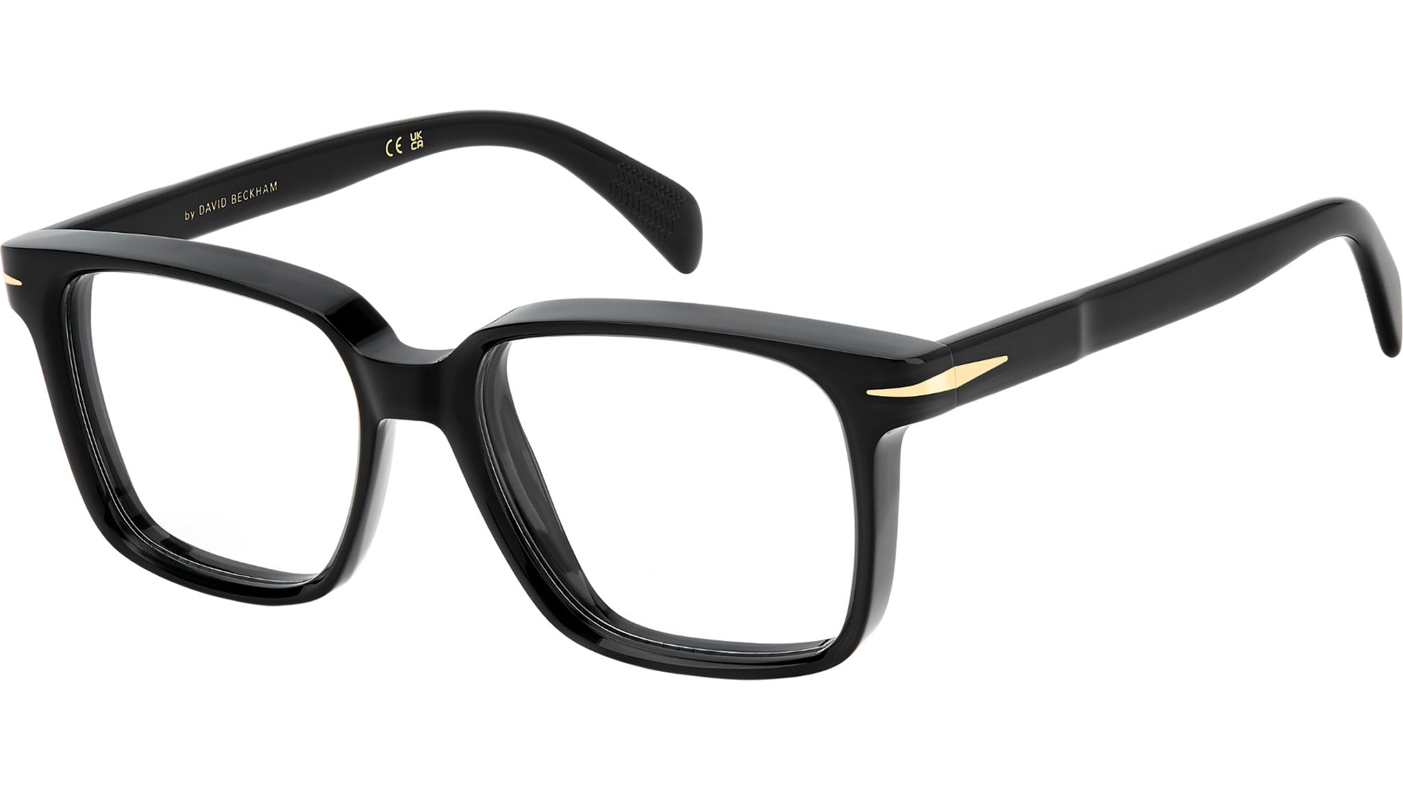David Beckham DB 7152 807 glasses for men, featuring black squared acetate frame and demo lens. Thin from the front, bold from the side, these Eyewear by David Beckham optical frames are a contemporary style statement. The square frames have been skillfully engineered to hold thick prescription lenses without compromising style or adding weight. The acetate construction highlights the beauty of refined textures, including new horn effects, embodying modern sophistication and distinction. Brand line: Style Pioneer. Style code: 109846. Color code: 807. Authorized David Beckham online reseller. Your glasses will include the original case and accessories and are covered by a 12-month global warranty.
