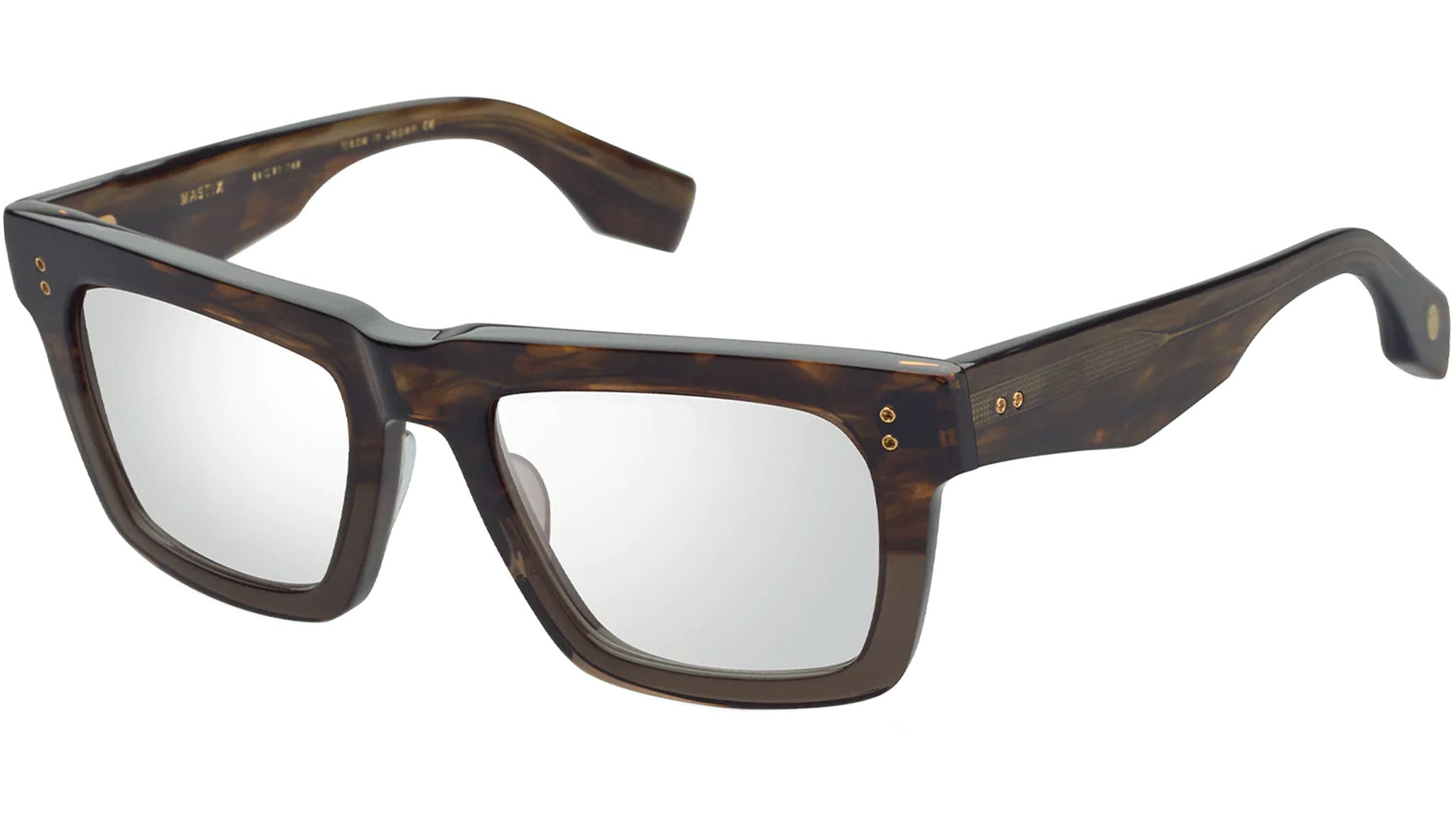 Mastix draws inspiration from the essence of DITA’s celebrated Sequoia and Creator models, charting a new course for traditional square acetate frames. With strong geometrically sculpted temples and a contemporary frame shape, DITA has achieved a style that is more youthful and modern. Finished with an oversized titanium 3-barrel hinge plate and exposed titanium wire-core, Mastix emanates an attitude of rebellion while maintaining a classical silhouette.
