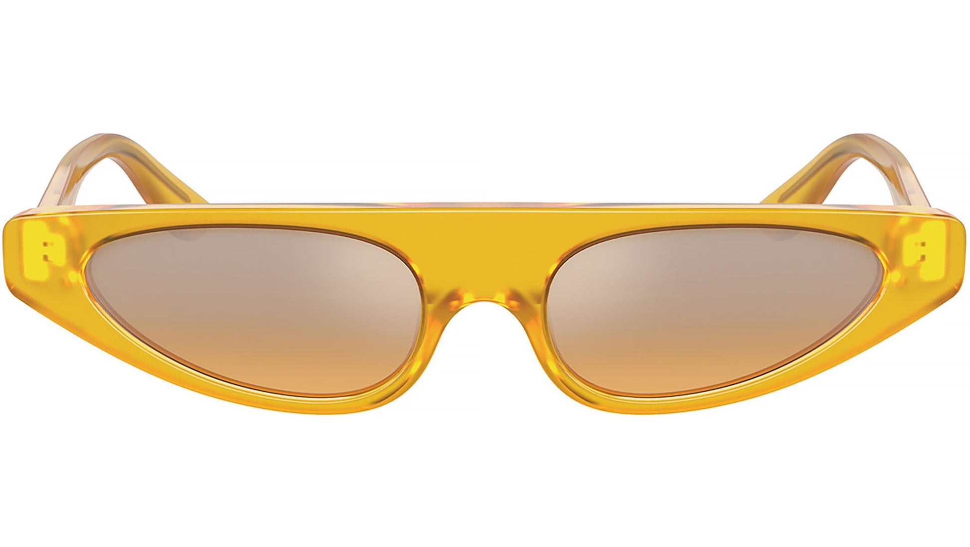 Dolce&Gabbana rectangle sungasses model DG 4442 from Dna eyewear line, color code 32837H milky yellow acetate frame with orange mirror silver gradient lens.
